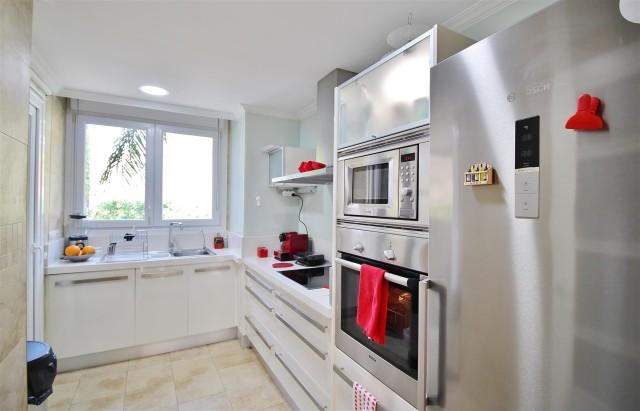Appartement, meublé, cuisine équipée, Parking: Grand garage, piscine communautaire, Jardin: Privé avec piscine, Orientation: Sud