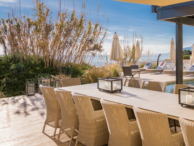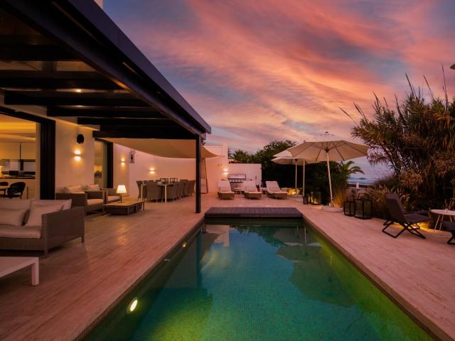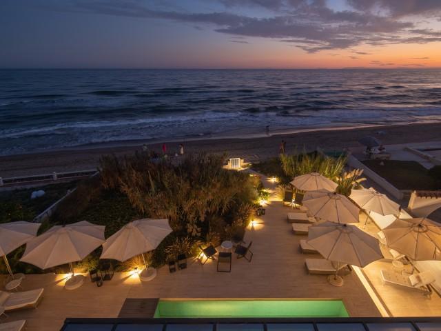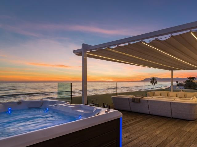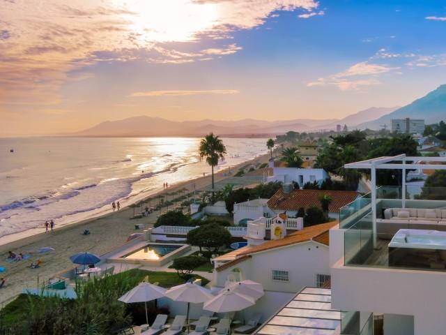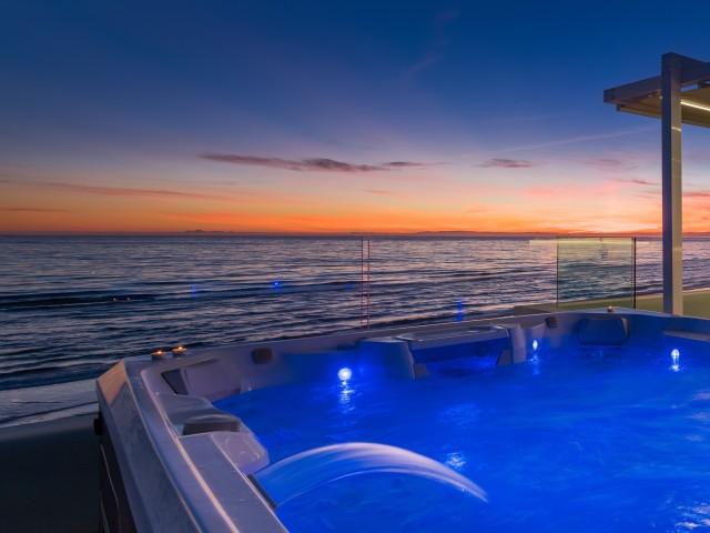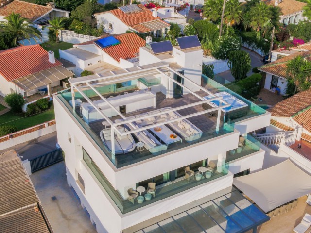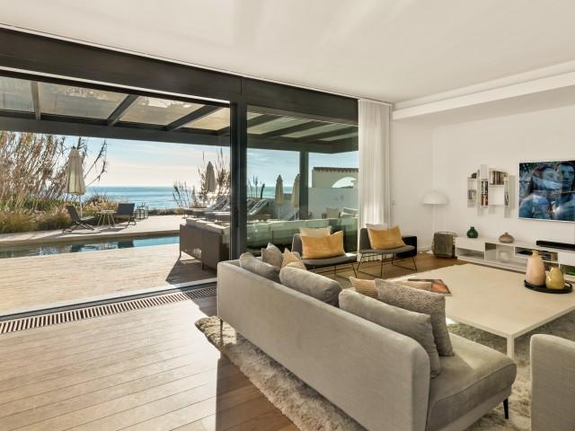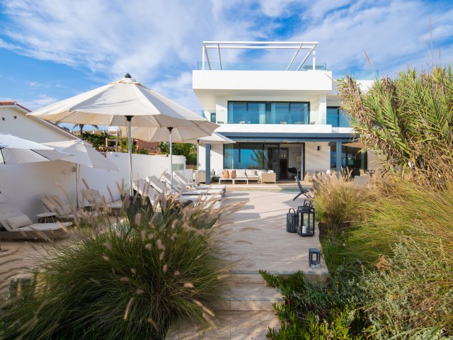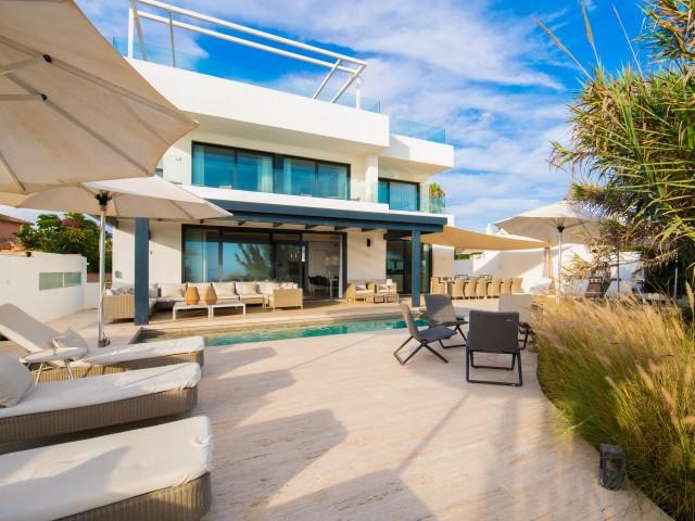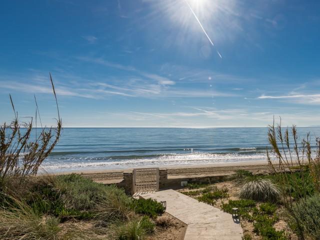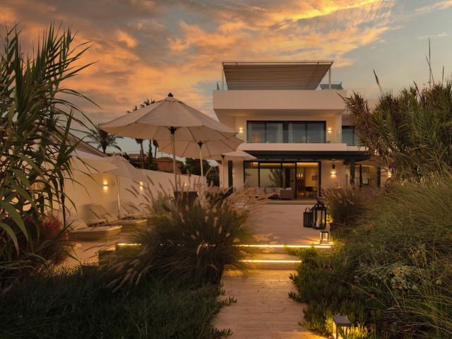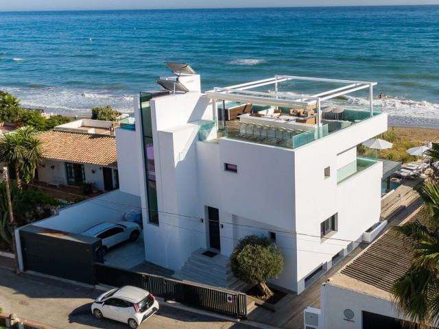 Cette propriété spectaculaire en première ligne est située sur la plage de Costa Bella, entourée de sable doré et de dunes naturelles. L´emplacement, située à l´est de Marbella, est proche de toutes les installations et à une courte distance du centre de Marbella et de l´aéroport de Malaga. La propriété a été récemment construite selon les normes les plus élevées, conçues par le célèbre architecte Jose Carlos Moya de Marbella, se distinguant par sa sophistication moderne et son élégance simple. Orientée sud ouest, la propriété bénéficie de superbes vues sur la mer et de magnifiques couchers de soleil. L´utilisation du bois, du verre, de la pierre et du béton a créé une maison familiale exceptionnelle. La propriété comprend un système de maison intelligente et toute la technologie moderne, y compris l´eau chaude solaire et chauffage au sol, système de récupération de chaleur, pompes à chaleur à haute efficacité, climatisation VR et contrôle automatisé de chaque pièce, sonorisation sans fil Sonos. Le design intérieur ne comprend que des matériaux de première qualité, des portes et fenêtres en aluminium de première qualité, du marbre de première qualité, des armoires en chêne, des planchers en chêne naturel dans toute la maison, du carrelages de qualité supérieure, un éclairage LED. Au rez de chaussée: La porte d´entrée s´ouvre sur le hall d´entrée spacieux double hauteur, menant à un vaste salon avec salle à manger et grande cuisine ouverte, entièrement équipée avec les derniers appareils modernes. Du côté de la plage, de la cuisine et du salon, de grandes portes coulissantes avec des stores électriques s´ouvrent sur une terrasse et la piscine chauffée. Un chemin vous mène à travers les dunes de sable directement à la plage. La dune privée magnifiquement aménagée offre une intimité totale aux espaces de détente et de restauration sur la terrasse. Au niveau de l´entrée il y a aussi une chambre d´amis avec dressing, et une salle de bain avec douche, WC et lavabo. Premier étage: À l´étage, , il y a la chambre principale, avec deux ensembles de penderies, et salle de bains principale avec douche, double vasque large, toilettes, et l´accès à la terrasse. Il y a deux autres chambres et une salle de bain partagée avec douche, WC et lavabo. Chacune de ces chambres a un accès direct à la terrasse face à la mer et offre une vue imprenable sur la plage. Solarium: Sur le toit, il y a une fabuleuse terrasse ouverte avec des équipements de fitness, une pergola et un jacuzzi, et, bien sûr, de superbes vues à 360 degrés. Sous-sol: Au niveau inférieur, il y a deux autres chambres doubles avec lumière naturelle, placards, une salle de bains avec lavabo, douche et WC. Le niveau inférieur dispose également d´un SPA avec bain à remous, bain à vapeur, sauna et douches; salles de stockage et buanderie. Chaque étage est desservi par l´ascenseur et l´escalier en chêne avec des balustrades en verre.