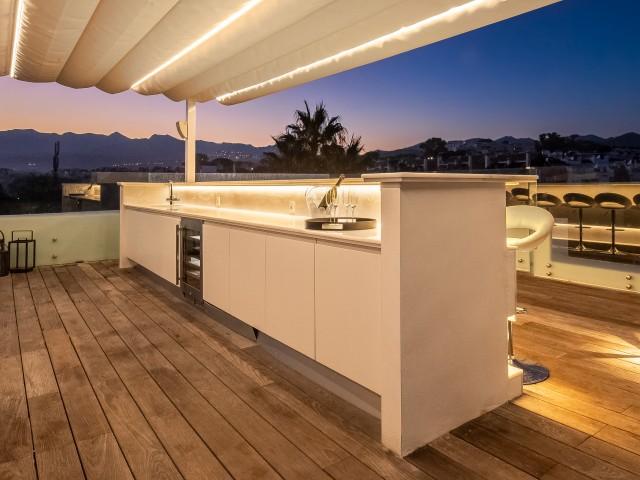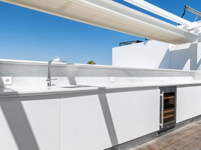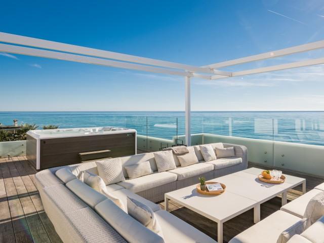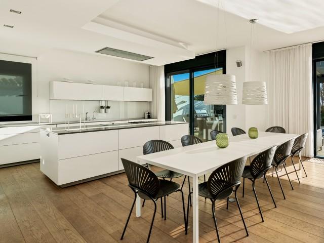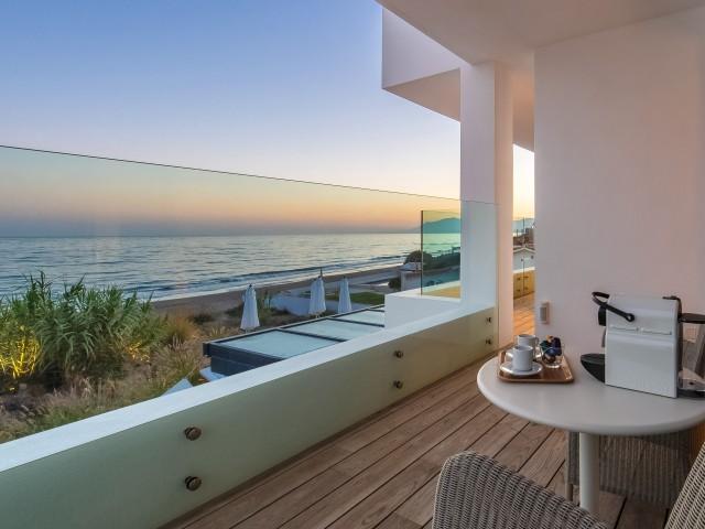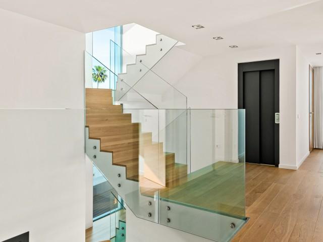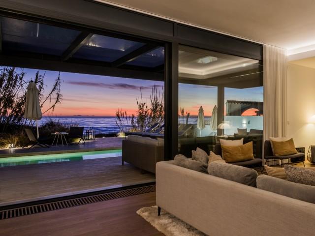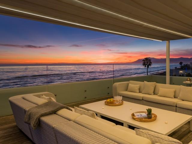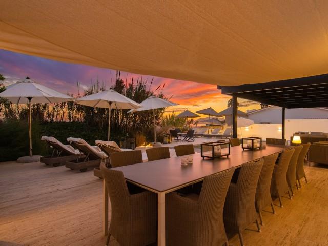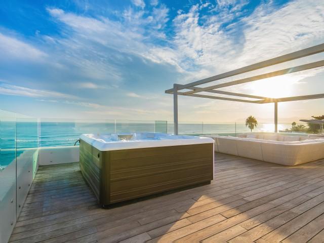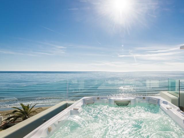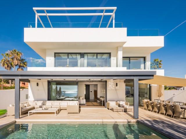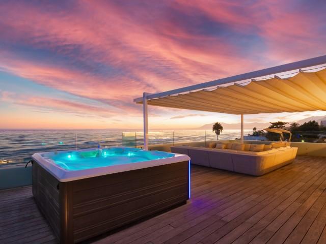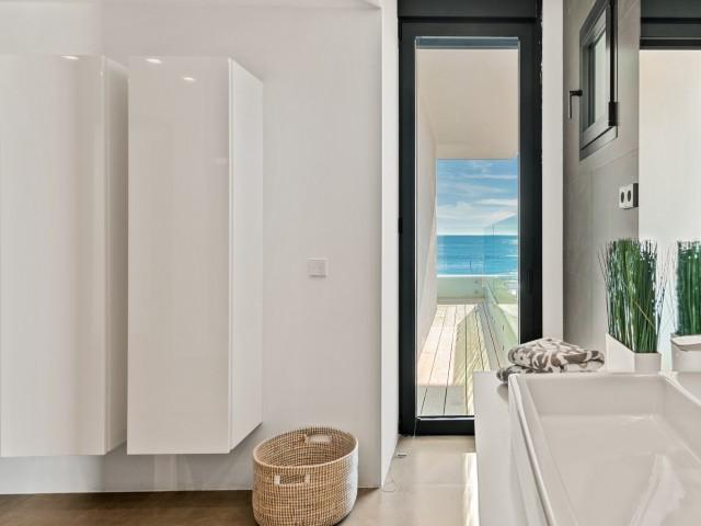 Cette propriété spectaculaire en première ligne est située sur la plage de Costa Bella, entourée de sable doré et de dunes naturelles. L´emplacement, située à l´est de Marbella, est proche de toutes les installations et à une courte distance du centre de Marbella et de l´aéroport de Malaga. La propriété a été récemment construite selon les normes les plus élevées, conçues par le célèbre architecte Jose Carlos Moya de Marbella, se distinguant par sa sophistication moderne et son élégance simple. Orientée sud ouest, la propriété bénéficie de superbes vues sur la mer et de magnifiques couchers de soleil. L´utilisation du bois, du verre, de la pierre et du béton a créé une maison familiale exceptionnelle. La propriété comprend un système de maison intelligente et toute la technologie moderne, y compris l´eau chaude solaire et chauffage au sol, système de récupération de chaleur, pompes à chaleur à haute efficacité, climatisation VR et contrôle automatisé de chaque pièce, sonorisation sans fil Sonos. Le design intérieur ne comprend que des matériaux de première qualité, des portes et fenêtres en aluminium de première qualité, du marbre de première qualité, des armoires en chêne, des planchers en chêne naturel dans toute la maison, du carrelages de qualité supérieure, un éclairage LED. Au rez de chaussée: La porte d´entrée s´ouvre sur le hall d´entrée spacieux double hauteur, menant à un vaste salon avec salle à manger et grande cuisine ouverte, entièrement équipée avec les derniers appareils modernes. Du côté de la plage, de la cuisine et du salon, de grandes portes coulissantes avec des stores électriques s´ouvrent sur une terrasse et la piscine chauffée. Un chemin vous mène à travers les dunes de sable directement à la plage. La dune privée magnifiquement aménagée offre une intimité totale aux espaces de détente et de restauration sur la terrasse. Au niveau de l´entrée il y a aussi une chambre d´amis avec dressing, et une salle de bain avec douche, WC et lavabo. Premier étage: À l´étage, , il y a la chambre principale, avec deux ensembles de penderies, et salle de bains principale avec douche, double vasque large, toilettes, et l´accès à la terrasse. Il y a deux autres chambres et une salle de bain partagée avec douche, WC et lavabo. Chacune de ces chambres a un accès direct à la terrasse face à la mer et offre une vue imprenable sur la plage. Solarium: Sur le toit, il y a une fabuleuse terrasse ouverte avec des équipements de fitness, une pergola et un jacuzzi, et, bien sûr, de superbes vues à 360 degrés. Sous-sol: Au niveau inférieur, il y a deux autres chambres doubles avec lumière naturelle, placards, une salle de bains avec lavabo, douche et WC. Le niveau inférieur dispose également d´un SPA avec bain à remous, bain à vapeur, sauna et douches; salles de stockage et buanderie. Chaque étage est desservi par l´ascenseur et l´escalier en chêne avec des balustrades en verre.