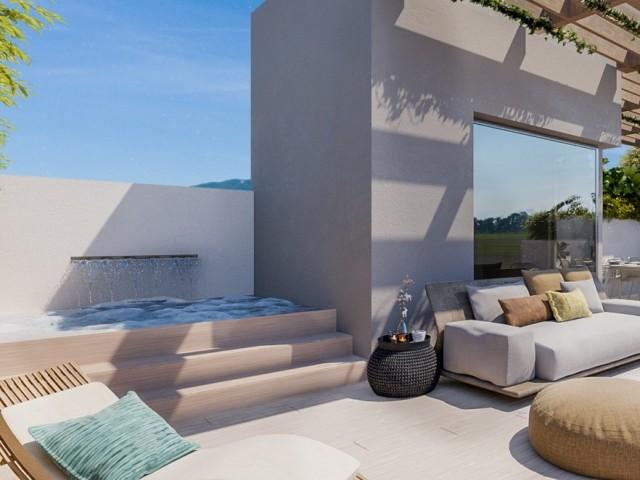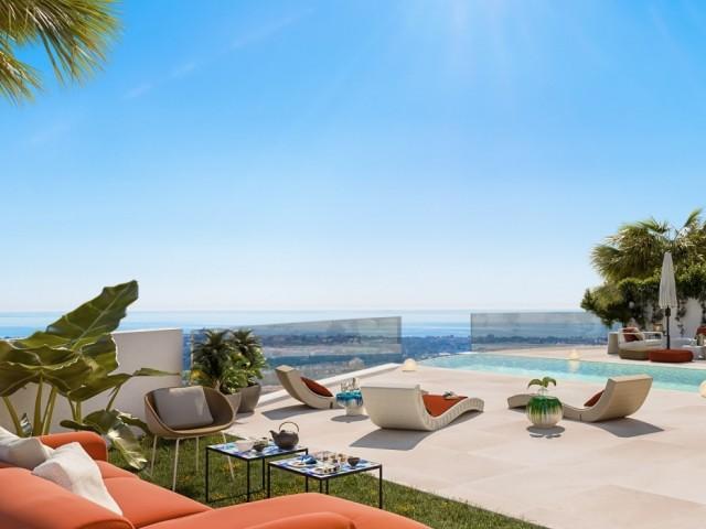 Nouveau développement de villa jumelée située à Benahavis, dans son propre complexe sécurisé et fermé et entouré de jardins paysagers, c'est un concept entièrement unique mettant l'accent sur un design de pointe et adhérant à l'attrait de luxe absolu exigé par le client exigeant. La villa offre le summum de la domotique, qui offre aux propriétaires une sécurité, un confort, une commodité et une efficacité énergétique en leur permettant de contrôler les appareils intelligents par une application sur leur smartphone ou un autre appareil en réseau. Le rez-de-chaussée se compose d'une conception ouverte avec de grandes fenêtres du sol au plafond, ce qui permet au flux naturel de lumière d'entrer dans la propriété depuis sa vue orientée sud-est. Les villas ont été conçues en tenant compte du climat, avec un grand espace de vie extérieur au rez-de-chaussée, de grands balcons attachés à chacune des 3 chambres au premier étage et une terrasse sur le toit qui profite pleinement des superbes vues panoramiques. Le sous-sol offre une immense pièce polyvalente, idéale pour une salle de jeux, une salle de fitness, une cave à vin ou encore pour créer d'autres chambres. Un ascenseur en verre de style moderne se démarque. L'intérieur est une leçon de perfection qui fait des villas l'une des meilleures propriétés de la région de Marbella.