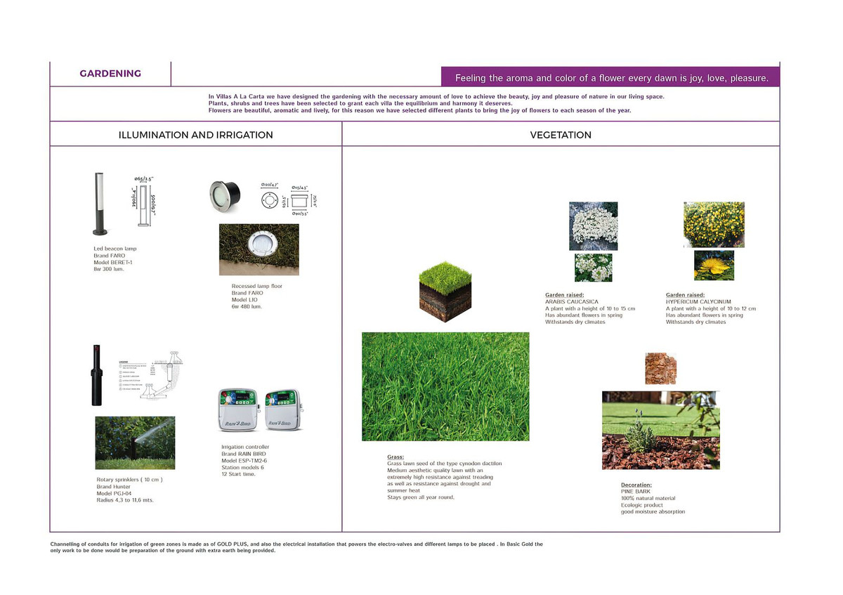The design of the villa will be adjusted to the client's taste. The location of the property can be chosen from the amongst the currently available plots and the house fixtures can be chosen from one of three different standard packages, though this can also be personalised according to the client’s preference.