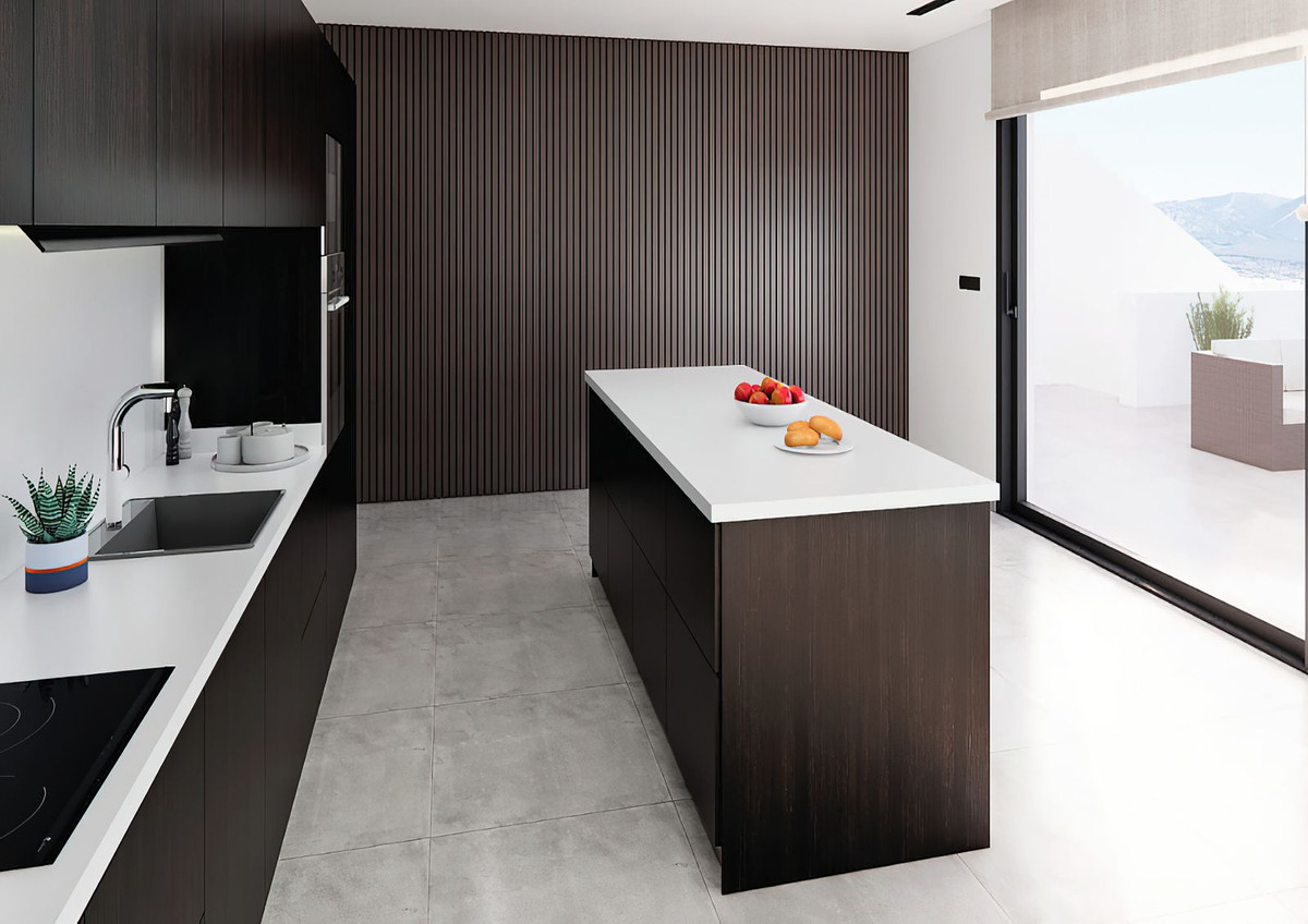 Connect with nature in these beautiful 3-storey villas on the outskirts of Coín. The large floor to ceiling window on the ground floor provides so much light that you could easily forget if you are inside or out, in the living room or on the terrace. It is a feeling of total continuity. In every space of the home, you can feel the connection with the natural environment, the garden, the terrace, the landscape, whilst taking in the breathtaking views.