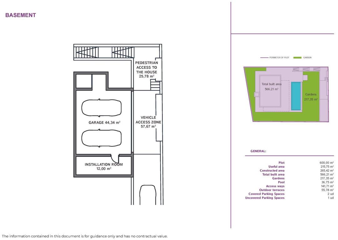 The Basement level provides both vehicle and pedestrian access to the house, parking area, machine room and the lift (elevator).