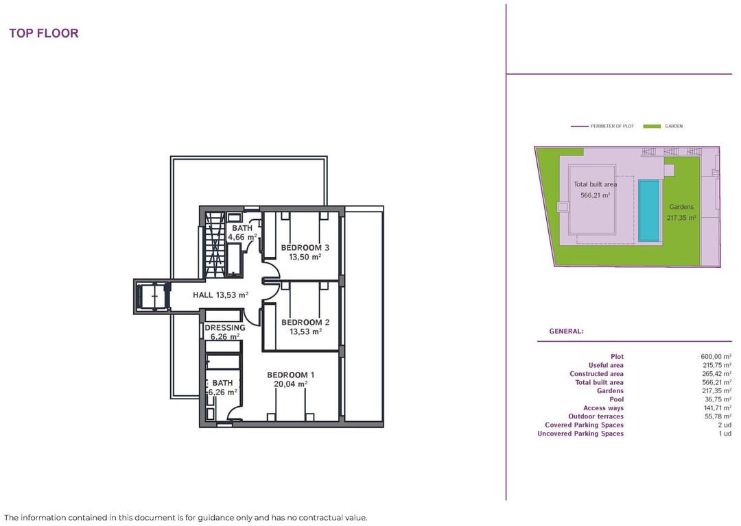 The Top Floor is where the bedrooms are, all with fitted wardrobes. The main bedroom has an ensuite bathroom, dressing room and covered terrace. The other two bedrooms have fitted wardrobes and a covered terrace with access to a shared bathroom.