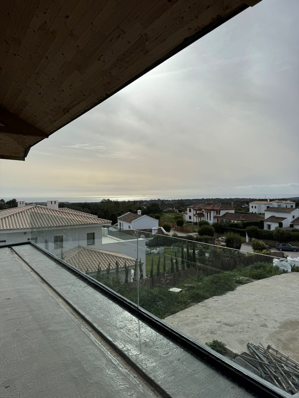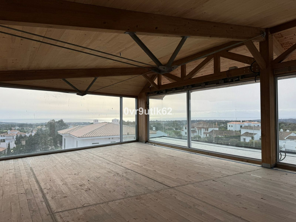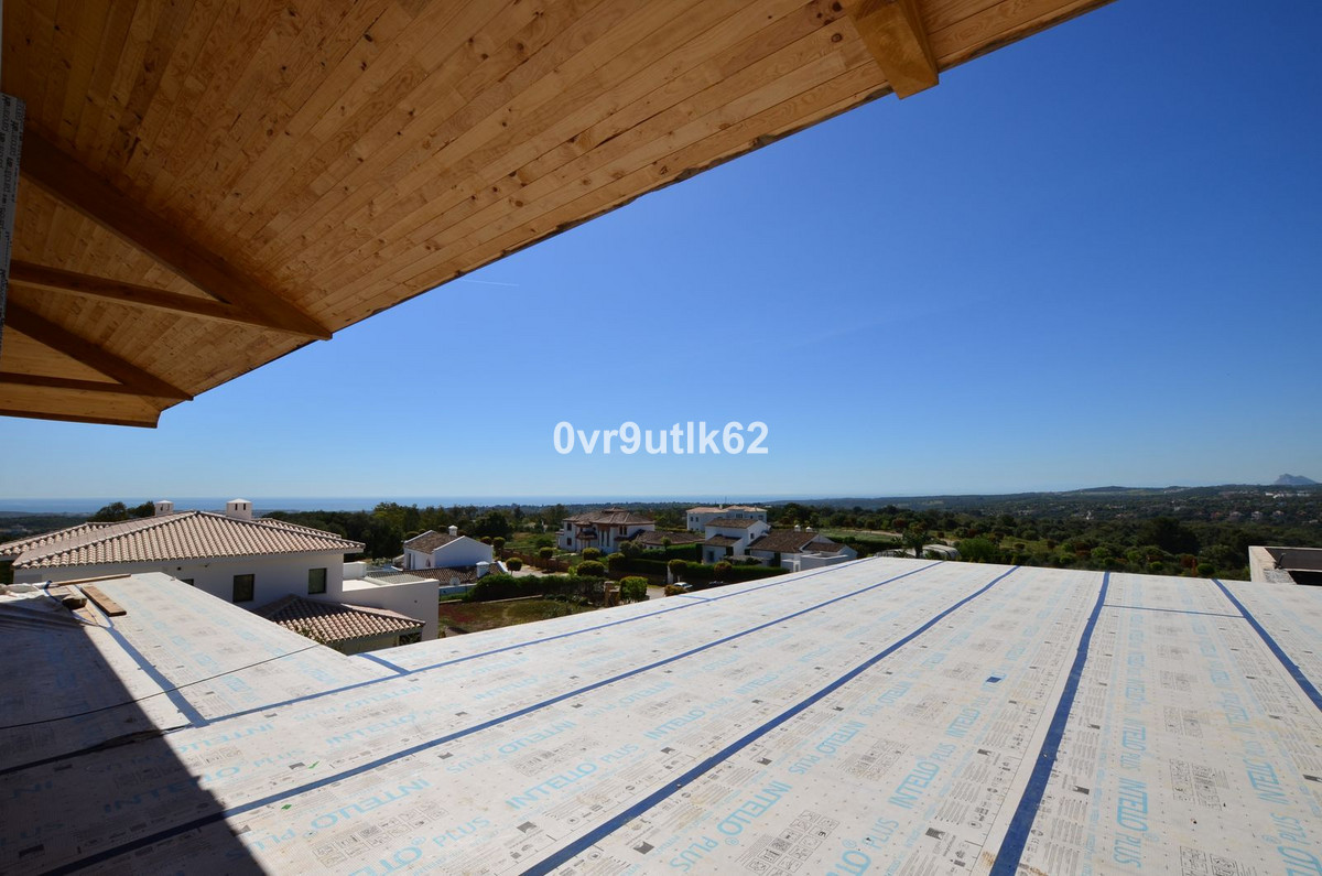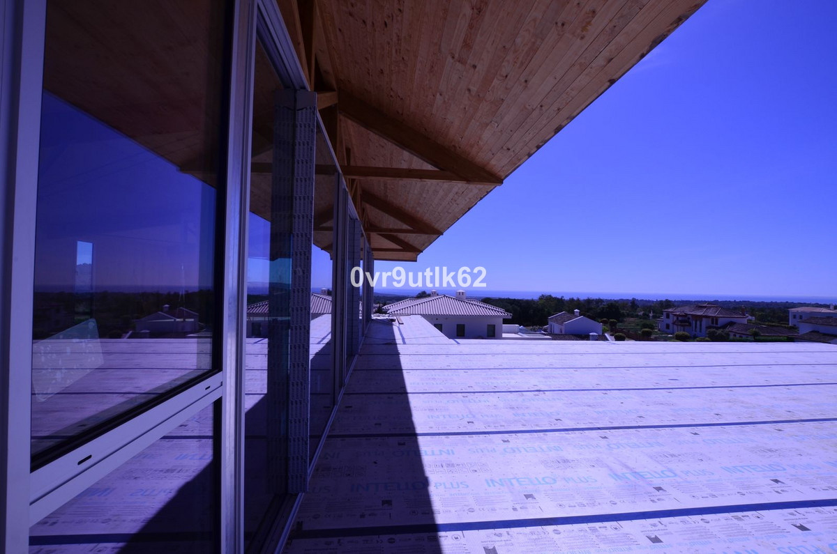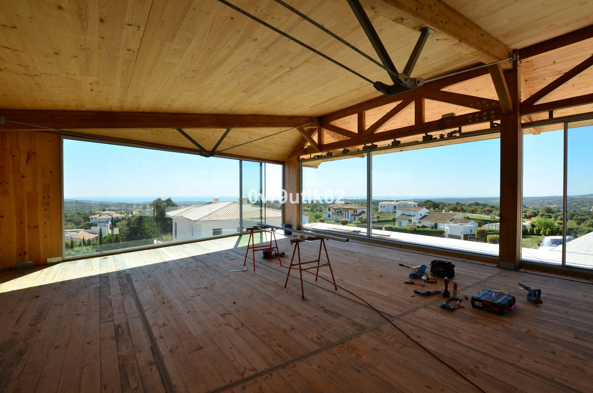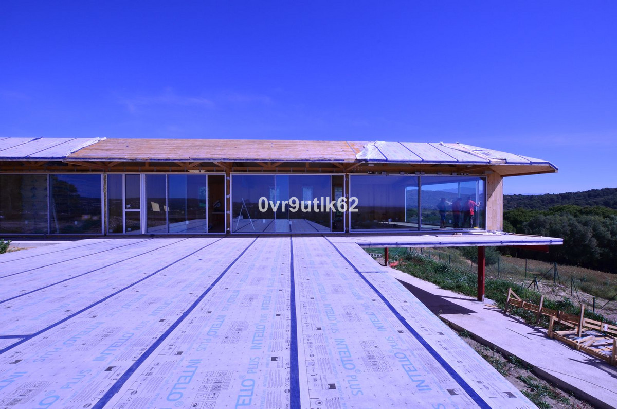 Presenting an exclusive under-construction villa enveloped by captivating sea views in the prestigious La Reserva zone in Sotogrande. This remarkable property showcases eco-conscious luxury, nestled among verdant landscapes with a sleek, modern design. Created to blend environmental sustainability with sophistication, every detail has been carefully crafted to reduce its environmental impact without sacrificing style. At the villa’s heart is a spacious, open-plan living area featuring floor-to-ceiling glass walls that offer sweeping views of the coast, with vistas extending to the African coastline, Gibraltar, and La Reserva golf course. Perched in the hills, this architectural masterpiece integrates seamlessly with its natural surroundings. Built with sustainable, durable materials like CLT wood, known for its strength and earthquake resistance, the villa combines eco-friendliness with a cozy, rustic aesthetic. Situated within a gated, 24/7-secured community, the property sits on a peaceful cul-de-sac, a short drive from Sotogrande International School and close to renowned golf clubs like La Reserva and Valderrama. Additionally, Sotogrande port and nearby beaches are only a quick 10-minute drive away. Inside Villa Verde, sunlight pours through energy-efficient, floor-to-ceiling windows and strategically placed skylights, blending the indoors with the natural beauty outside. The open layout fosters a fluid connection between living spaces, emphasizing spaciousness and a harmonious relationship with the surrounding landscape. Villa Verde’s eco-friendly approach is evident in its thoughtful design. Passive cooling is enabled by natural ventilation through strategically positioned windows and adjustable louvers, minimizing the need for air conditioning. Insulation made from recycled materials ensures year-round temperature stability, while energy-efficient appliances further reduce energy use. Stepping onto the expansive terrace, a serene oasis awaits. A large infinity pool invites you for a refreshing swim while enjoying the endless ocean view.