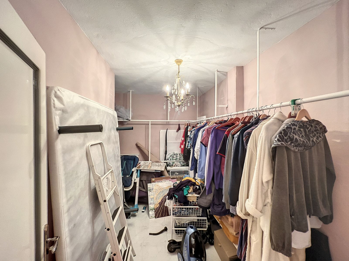 Moving downstairs, you'll discover the vast master bedroom, featuring an oversized en suite bathroom and a walk-in closet for your convenience. Two more well-appointed bedrooms, each with fitted wardrobes, and another full bathroom await. The property is equipped with air conditioning for both heating and cooling.