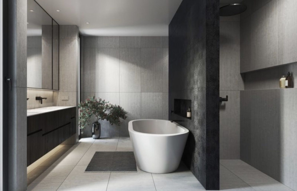 - Bathroom walls with COVERLAM plates (GRESPANIA) 2700X1200 (Color to choose)
