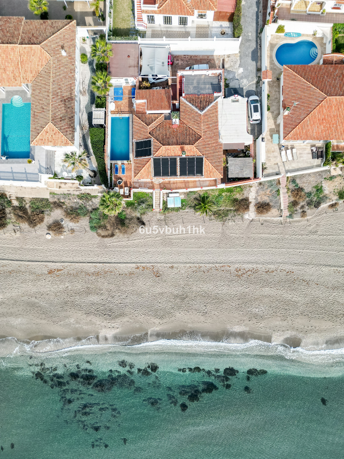 The villa is located on the beachfront, offering stunning sea views with its own access to the beach. In addition, it has a large private terrace, from where you can enjoy the views and relax outdoors.