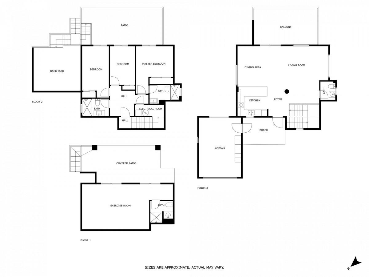 The second floor has three bedrooms and two bathrooms, one of which is connected to the master bedroom. All bedrooms have access to a large terrace.