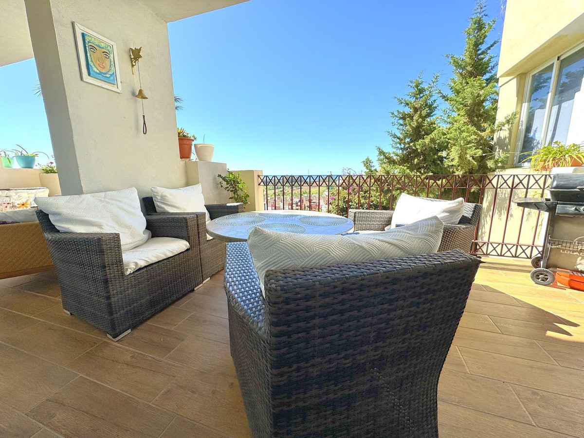 A corner bright and spacious 3 bedrooms apartment for sale in a closed urbanization. The apartment has a panoramic sea view, the windows face three directions which will provide natural light all day long. The huge terrace will serve as a wonderful place to relax. Walking distance of one of the most popular private school. Short drive to all amenities and beach.