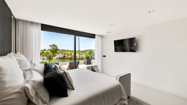 Entrez dans la quintessence de la vie de luxe avec cette villa spectaculaire, méticuleusement conçue par un architecte estimé et primé. Niché dans la prestigieuse Golf Valley de Nueva Andalucía, une enclave résidentielle très convoitée le long de la Costa del Sol ensoleillée, ce chef-d'œuvre orienté sud-ouest offre un mélange inégalé d'élégance et de sophistication.
