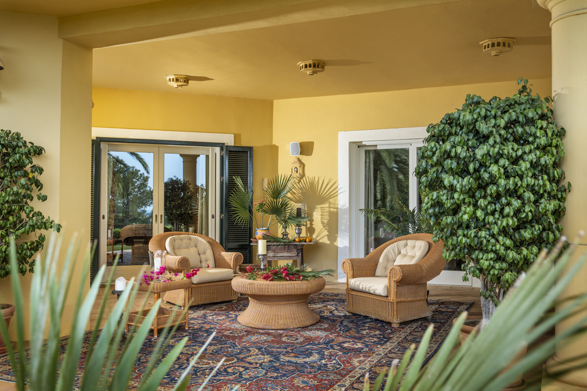 The exquisitely cared garden has a variety of palm trees, algarrobos, olive trees, jacarandas and fruit trees such as apples, chirimoyas, quinces, lemons, figs and grapefruits. Each corner of the garden is designed to offer tranquility and natural beauty.