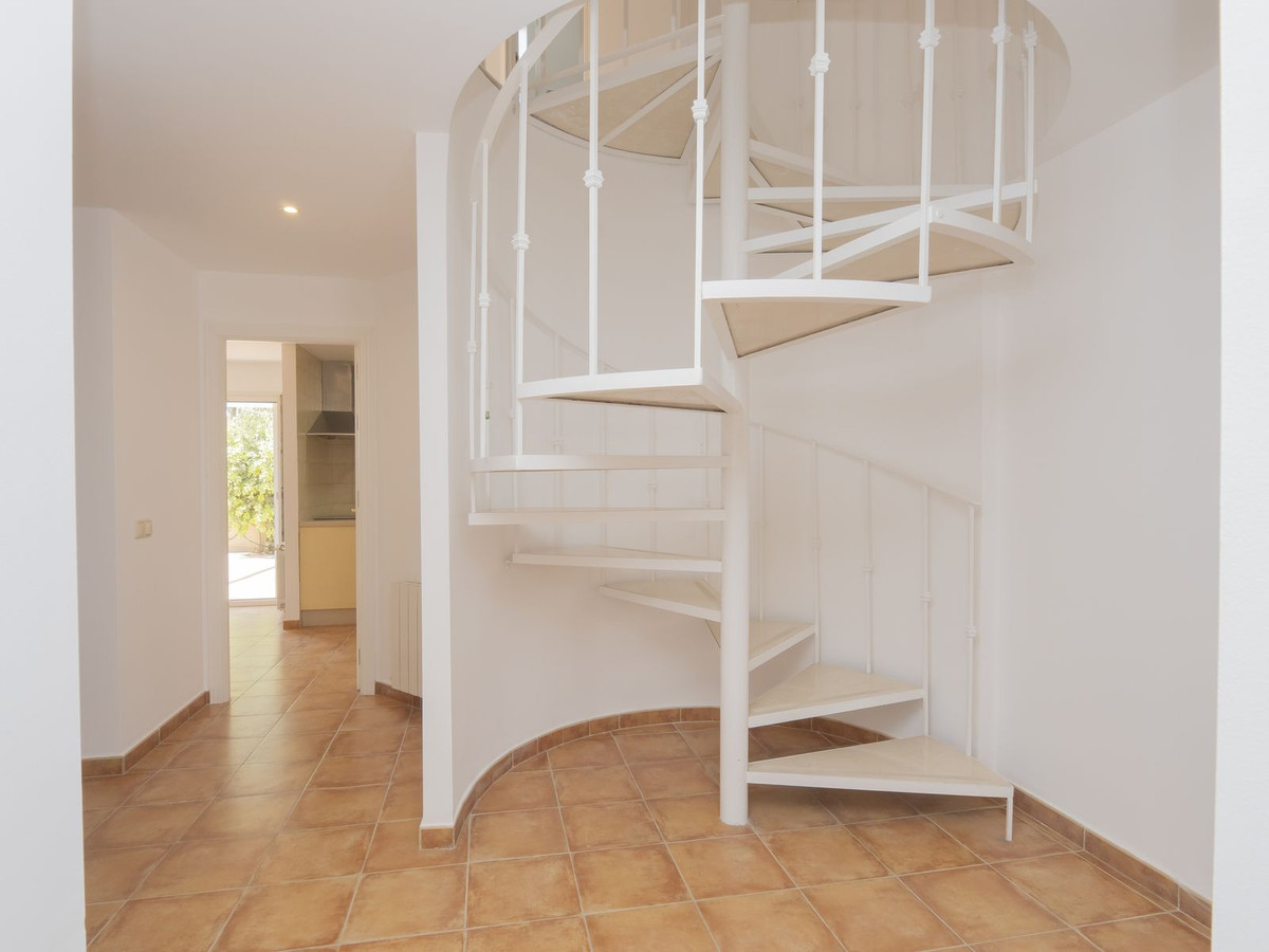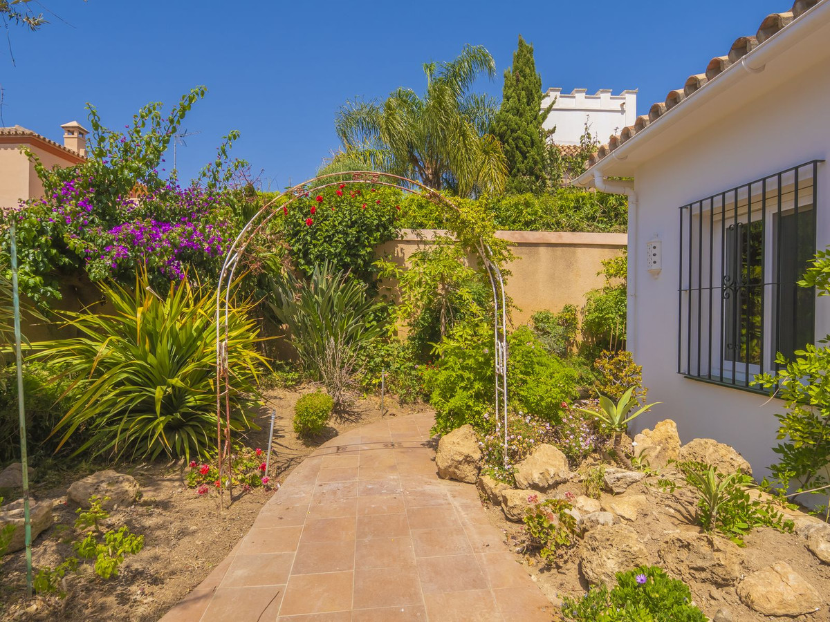 Care for Tranquility, Nature but still at 5 minute Marbella downtown? This is an independent Villa located at the outskirts of Marbella, surrounded by nature, within a small community of proprietors, and comprises five bedrooms and four bathrooms distributed along two storeys. On the ground level, the kitchen plus four rooms to be allocated at will, and a cute terrace with BBQ area. On the upper floor, an ample bedroom with dressing room and bathroom plus another terrace adding up to 15sqm. This property plot surrounds the house, with a number of fruit trees and an orchard area which could be converted in the pool area, besides, there is a wide storage room currently hosting tools. The dwelling shares a border with another property, the alley leading to the house and a small creek East of the property. An interesting choice for a quiet property for those who love Nature, environment and yet near golf and Marbella beaches.