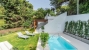 It is totally refurbished and tastefully decorated with quality furniture (Roche Bobois). The property is on one floor and consists of a main villa with 2 bedrooms (1 master bedroom with access to the terrace, dressing room, and 1 complete bathroom and the second bedroom with bathroom en suite), living room, open plan kitchen, both with direct access to the pool and garden, 1 guest toilet. In the garden area we find the swimming pool, and an outbuilding that could be used as a study, office, atelier... with open kitchen and bathroom with shower.