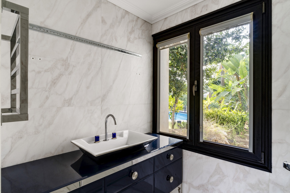 Renovation Opportunity - six-bedroom south west facing villa, located in Lomas de Magna Marbella, one of the most prestigious complexes on Marbella's Golden Mile. The villa is the perfect renovation project and is situated within a gated community that offers 24-hour security service, two large communal pools, and lush tropical gardens of incredible beauty. It is conveniently located close to all amenities, including supermarkets, shops, restaurants, schools, and golf courses, and is only a five-minute drive from the sea.