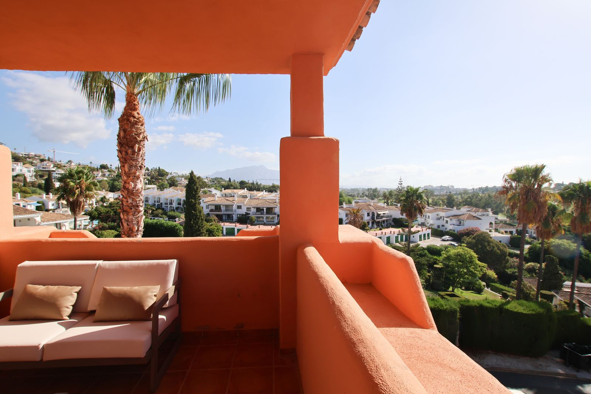 Surrounded by extraordinary large terraces on the south, east and west sides on both levels; and with access from the living room, master bedroom, second bedroom and top of the stairs; providing ample outdoor space and panoramic views of the La Concha mountains and the renowned El Paraíso Golf Course; this duplex penthouse boasts a fully fitted modern kitchen, a spacious living room, and elegant guest bedrooms along with a guest bathroom. The top floor is dedicated exclusively to the master bedroom, complete with an ensuite bathroom and two terraces.