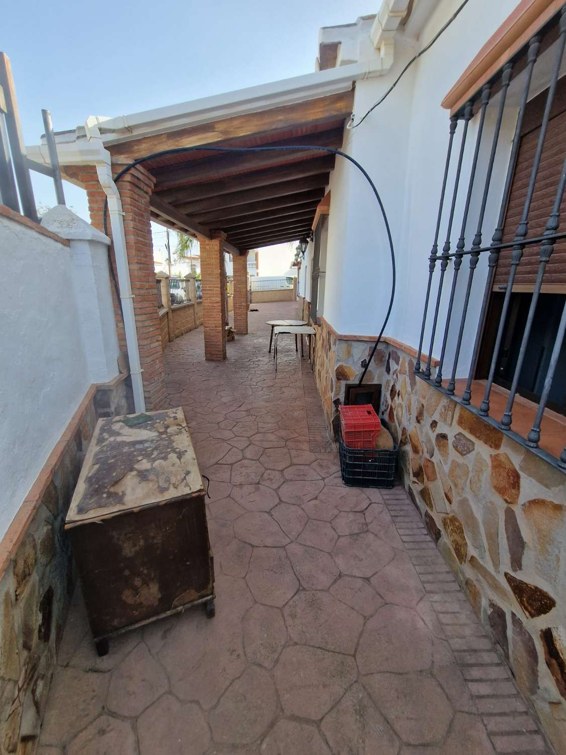 For sale very spacious house in the center of a neighborhood of Alora on 5000m2 of plot. It consists of on the ground floor of a living room, a separate kitchen, three bedrooms and 1 bathroom; on the first floor there are two bedrooms and 1 bathroom. On the plot we find several storage rooms that can be converted into extra rooms, many fruit trees, a large patio, two car spaces on the plot. The house has been partly renovated, very quiet location with a bus stop nearby, Las Mellizas train station, we find a pharmacy, restaurants, tobacconist, supermarket all within walking distance, a few minutes from El Chorro and El Caminito del Rey. Perfect for making a rural house, holiday rental or several apartments to rent.