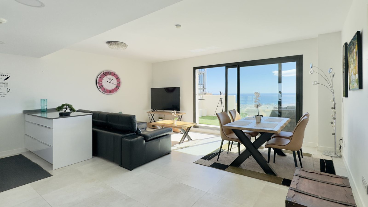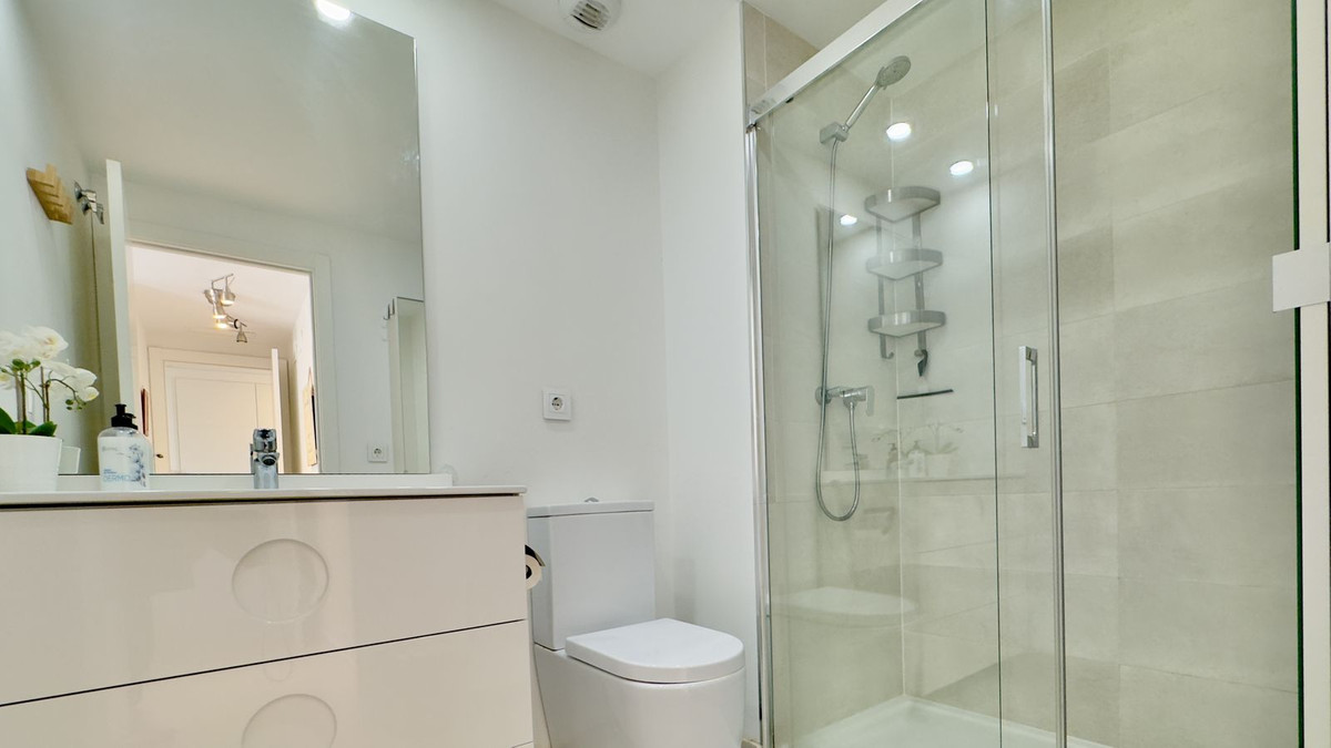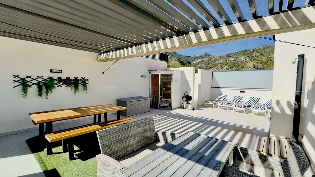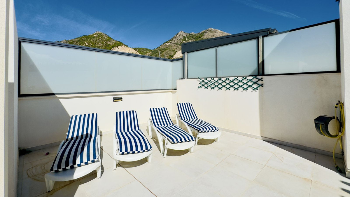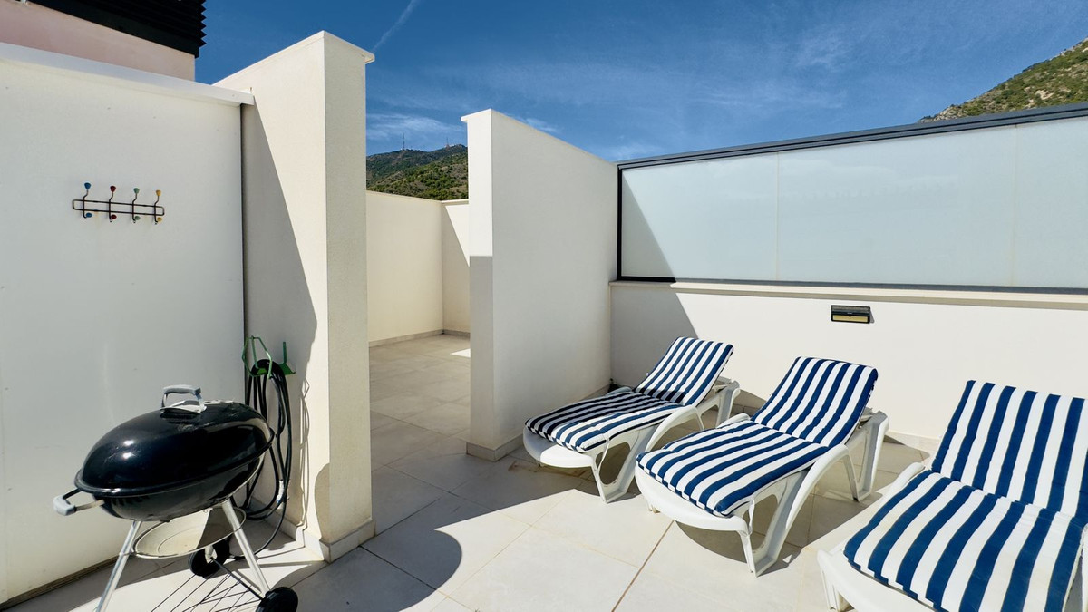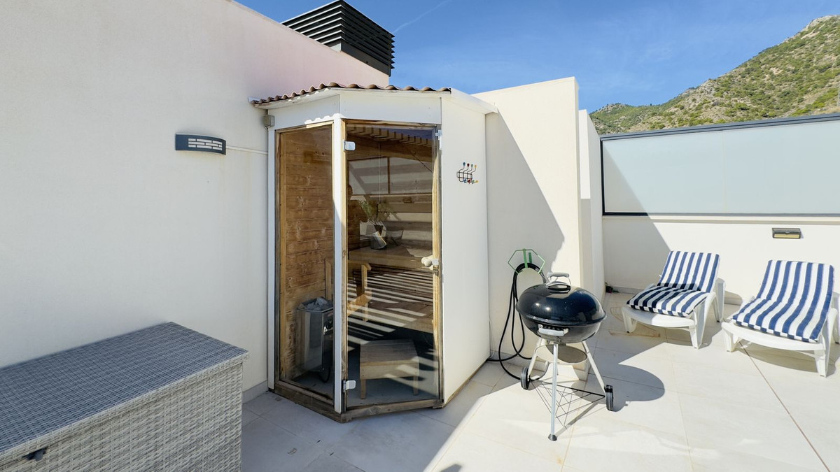 This beautiful 2-bedroom, 2-bathroom penthouse in Benalmadena offers high-quality finishes throughout, creating a luxurious atmosphere. The smart, modern floor plan optimizes space for comfortable living. The outdoor areas are a standout feature, with a south facing lower terrace that enjoys a lot of sun, and a large rooftop terrace with amazing sea views and sunshine all day. A private sauna on the rooftop adds a touch of indulgence.