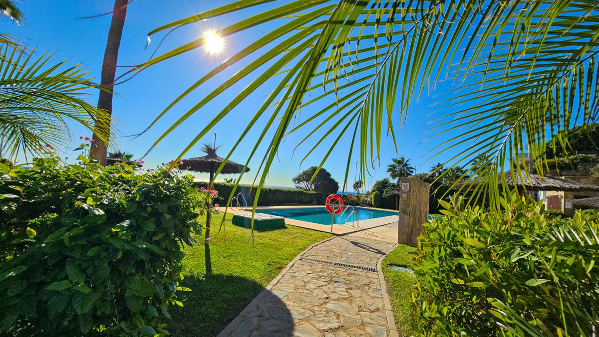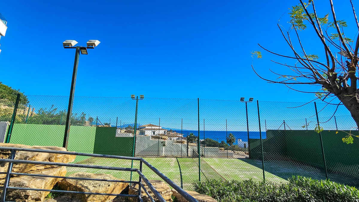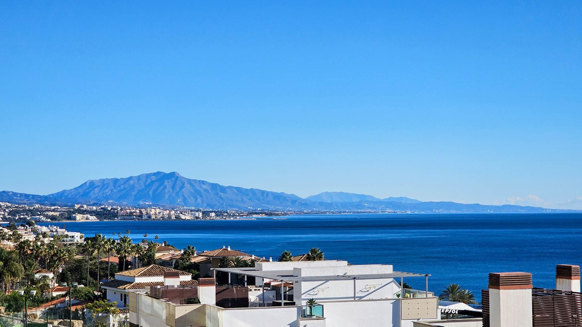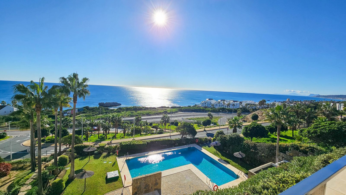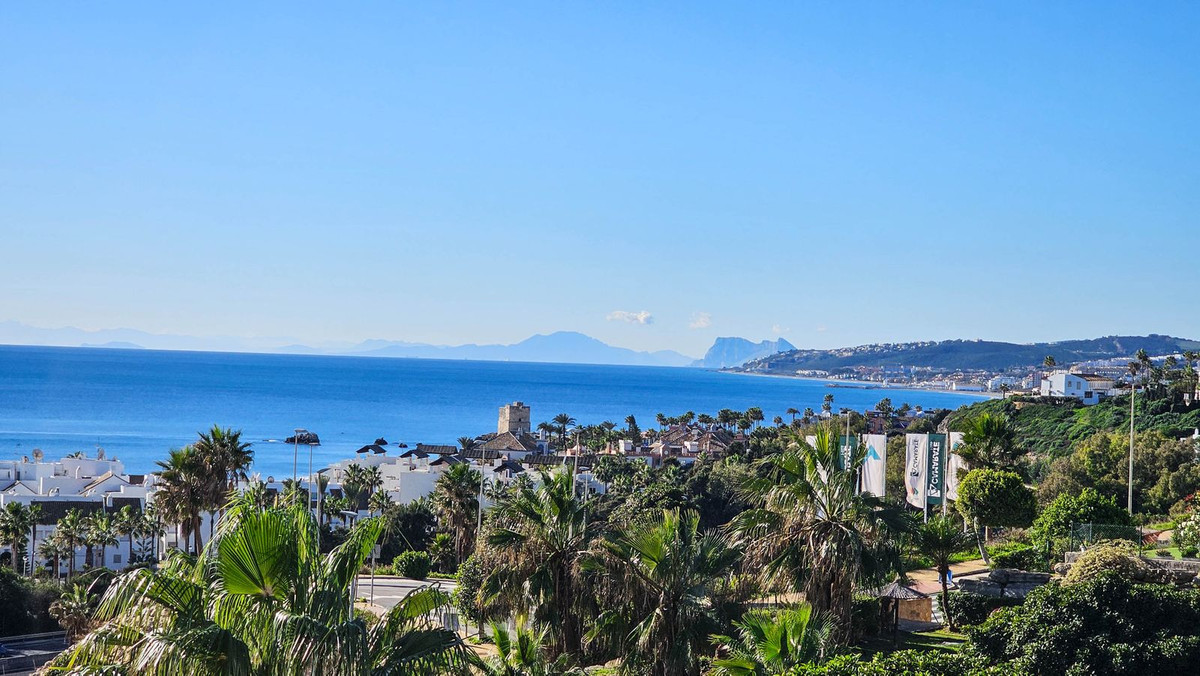 Stunning sea views in this 2 bedroom, 2 bathroom beachfront apartment in this development with communal gardens, paddle tennis court and swimming pool. This spectacular apartment has its entrance on the ground floor, although it is an intermediate floor due to the elevation of the land facing the sea. It is distributed as follows: spacious and bright living-dining room through the large window with beautiful sea views and direct access to the incredible 55m2 terrace with covered and uncovered areas, perfect for dining outdoors all year round. The kitchen is independent, L-shaped, has a granite kitchen counter and modern, high-quality furniture, and has a space for laundry and other utilities. The master bedroom is large and has an en-suite bathroom with a bathtub, a large built-in wardrobe and direct access to the terrace. In addition, it has another large room with access to the terrace and a second guest bathroom, also with a bathtub. The property has been built to the highest quality standards with laminate flooring, hot/cold air conditioning system, fitted wardrobes and electric shutters. In addition, it is sold fully furnished and includes a 5m2 storage room included in the price. The building also has a lift and video security. The location of the property is ideal, with sea views, a few minutes walk from the nearest beach (about 700 meters), 10 minutes by car from Estepona and La Duquesa beach.