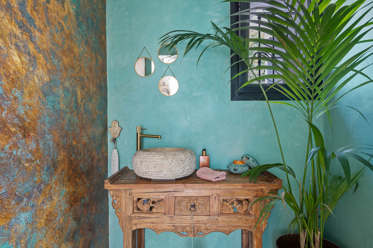 - Ground Floor Haven: Three exceptionally spacious bedrooms grace the ground floor, each accompanied by its own en-suite bathroom. Tadelakt finishing and imported handmade Moroccan taps add a touch of opulence to these private sanctuaries.