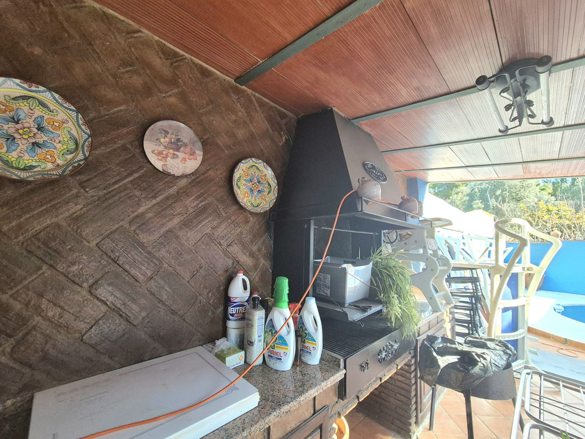 Coming down again and going behind the house you have a lovely covered barbacue area where they have also moved the laundry to, it has a barbecue, sink etc...Above this all you also have an own pool, surrounded by a patio. The whole garden is tiled and low maintance.