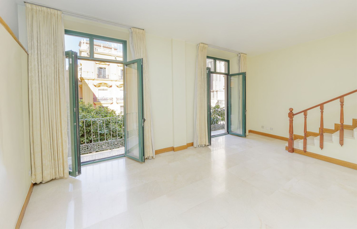 We offer you this property for sale in one of the most privileged locations in Malaga, next to the emblematic Cathedral of Malaga, in the centre of Malaga Capital, located on the first floor with a surface area of 145m², distributed between: 3 bedrooms, 2 bathrooms (two of them en suite), independent fitted kitchen and living room on two levels (there is a space with a library and when you go down the stairs, in the lower area, there is the largest and brightest room with access to two balconies from which you can enjoy impressive direct views of the Cathedral).