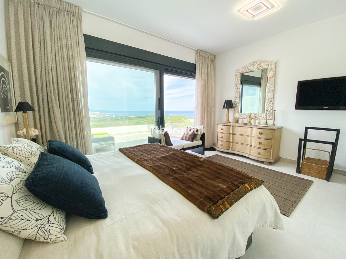 This luxury house with spectacular sea views is located in Terrazas de Cortesin near the beautiful town of Casares Playa, Málaga. It is 30 minutes to Casares Pueblo and only a few minutes to the beach. This property offers ample space for modern living. Bright and spacious living room with floor-to-ceiling windows that lead out onto a spectacular terrace perfect for relaxing and entertaining. The fully fitted kitchen is equipped with modern appliances, making it a delight for cooking enthusiasts, and has a separate utility room. The two bedrooms on the first floor are en-suites and enjoy spectacular open views, the master bedroom has a private terrace, the third en suite bedroom is conveniently found on the ground floor.