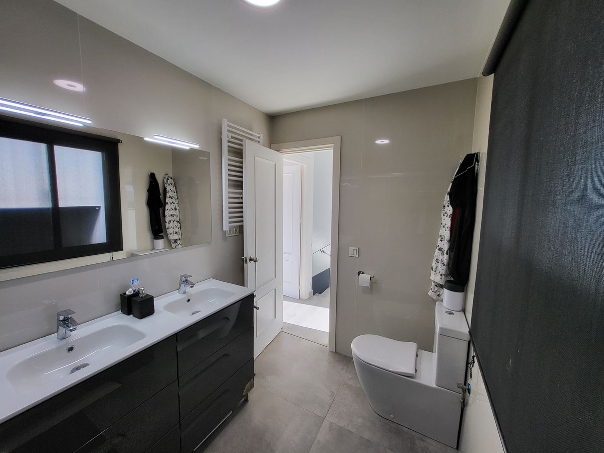 On the main floor, you will find the main entrance leading to a bright living room with an open-plan kitchen, a guest toilet, and a laundry area. From the living room terrace, you can enjoy stunning views.