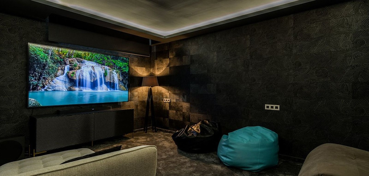 The lower floor beckons with entertainment options—a cinematic experience awaits in the theater room with an 86-inch TV and surround sound, while the garden-view gym inspires fitness. Two more bedrooms, a garage for three cars, and ample parking space complete this exceptional property—a masterpiece awaiting its discerning owner’s touch.