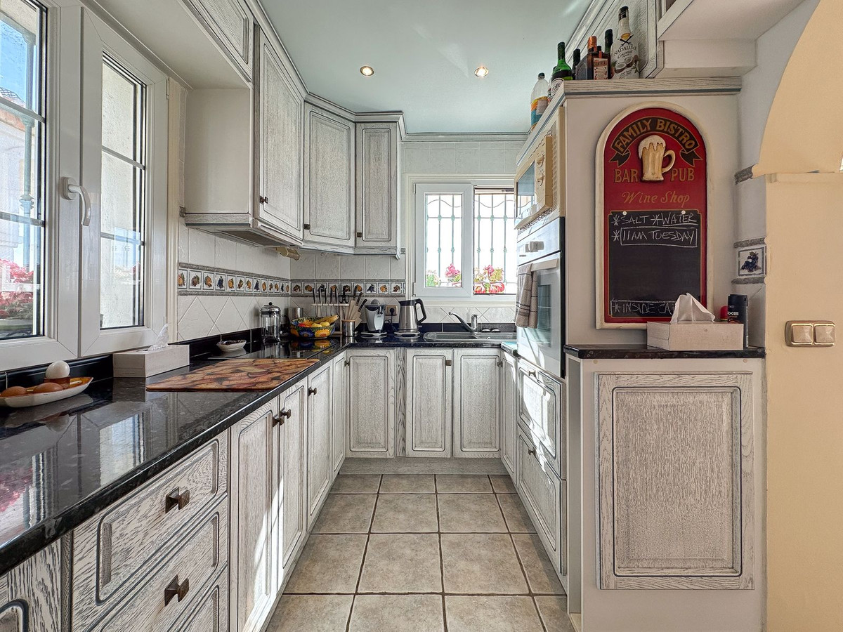 When you enter, you are welcomed by an elegant entrance hall, on the ground floor where there are three bedrooms, with fitted wardrobe and two bathrooms one of the bedrooms, is the master bedroom ensuite and has own access to the terrace and pool.
