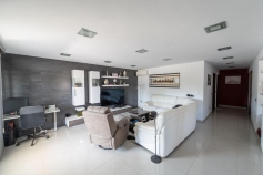 This very spacious one storey villa sits on a very large flat plot of land close to town and within walking distance of local restaurants. The rooms throughout this villa are sizeable, there are three bedrooms all ensuite, a lounge with a fireplace and a fitted kitchen. Next to the main house is a one bedroom guest apartment and there is also another building near the private pool which could accommodate another studio apartment. The plot is very large and has a pond, a pool, covered and open terraces, storage and a driveway leading to a three car garage.Everything in the house functions however it is in need of a reform. This family home is close to town and all its amenities and would make an excellent full time or or a great holiday rental.