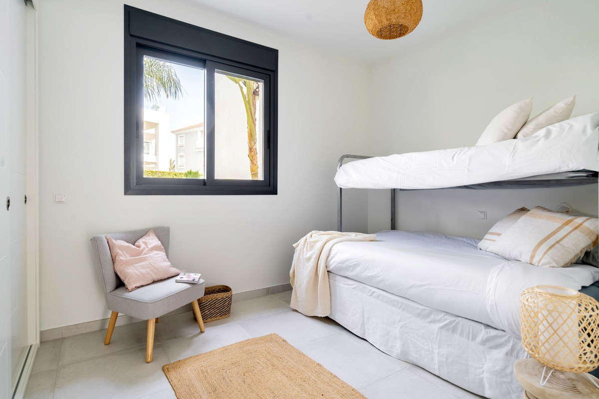 Price Reduction. From €595.000 to €570.000. This exceptional apartment, built in 2020, offers a perfect fusion of comfort and contemporary style. The home features two bedrooms and two bathrooms and is being sold fully furnished. A key highlight is the versatile, retractable glass terrace, designed to be used year-round, maximizing the home's exterior space and allowing residents to enjoy the beautiful climate in any season. Located in the exclusive Cortijo del Golf community, this property is a true symbol of quality and modern design. Its architecture is crafted to seamlessly blend with the spectacular natural surroundings, boasting a privileged and unique location. Residents benefit from a wealth of amenities, including fantastic leisure facilities and meticulously maintained green areas. The sale includes an underground parking space and a storage room, adding to the convenience and functionality of the home. This is a unique and outstanding opportunity to acquire a high-quality, modern residence in a truly exceptional setting.