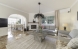 It has three elegantly decorated bedrooms, each with a double bed and two stylish bathrooms. A spacious living room includes a fireplace and a lounge area for dining and socializing.