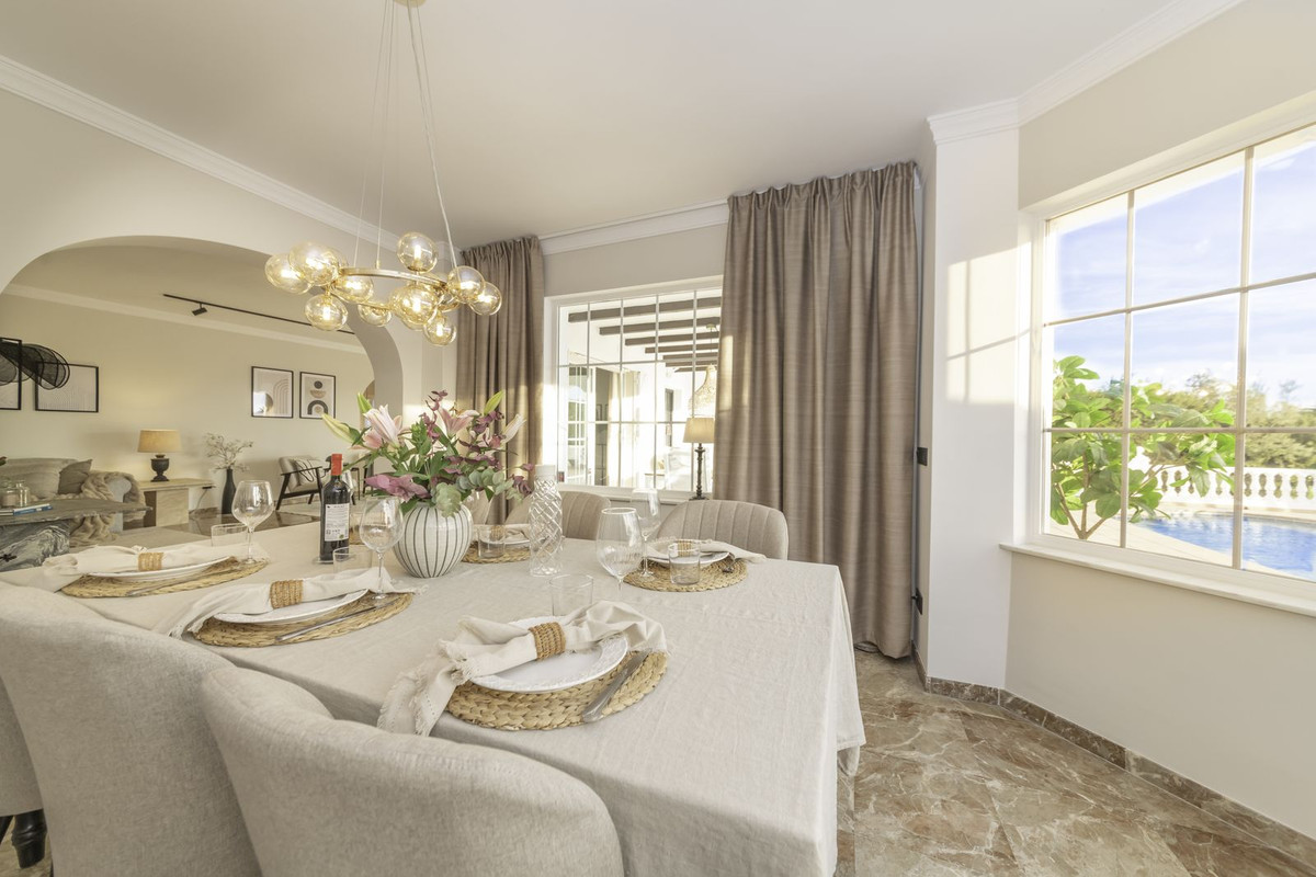 The villa also boasts a large swimming pool and the beautiful terrace is partially covered to provide shade from the sun. The large, luxurious kitchen has been completely refurbished.