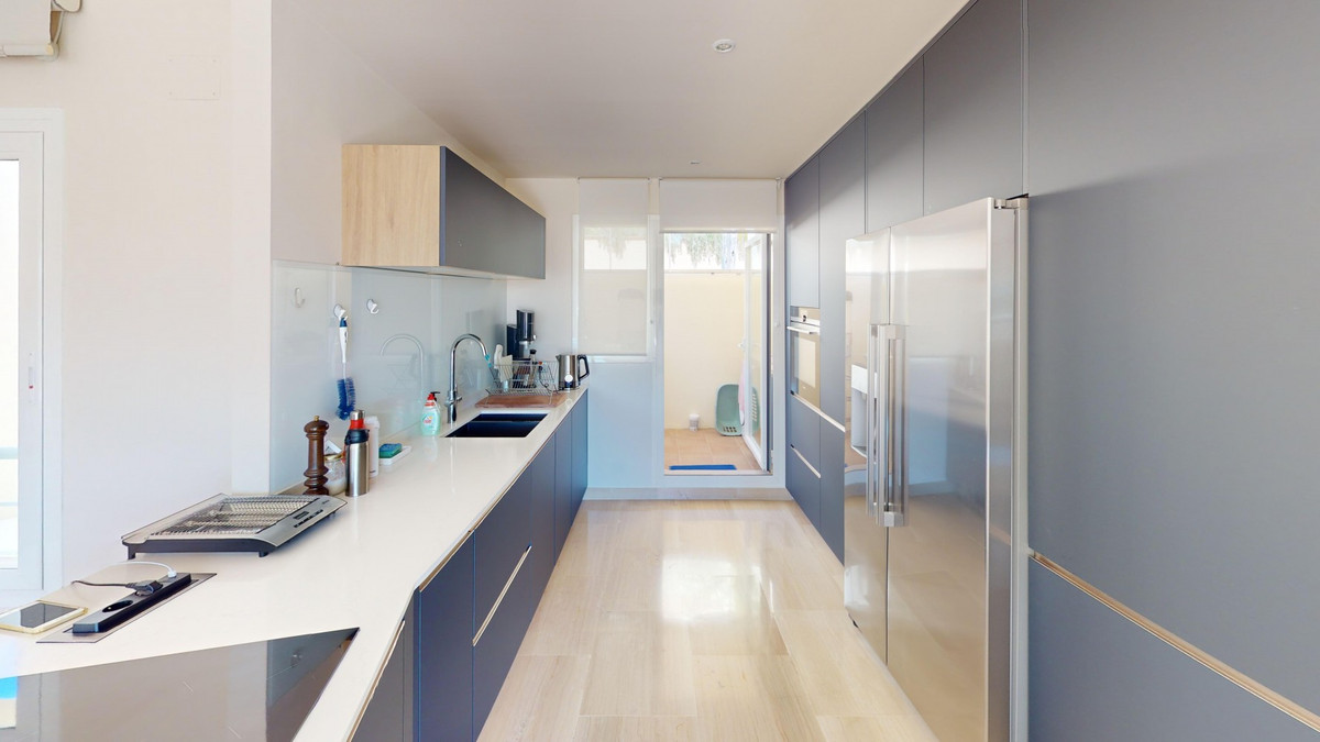 This contemporary penthouse in Mijas, Málaga, offers a harmonious blend of comfort and style. It is located directly on a golf course and offers an impressive view of the sea, so you can enjoy both the tranquillity of the green and the panorama of the coast. The open-plan living area features floor-to-ceiling windows that flood the space with natural light and provide stunning panoramic views of the surrounding landscape. The living room is tastefully furnished with a plush white sectional sofa, accented by vibrant area rugs that add warmth to the polished floors. The sleek kitchen boasts modern navy cabinetry contrasted with white countertops and high-end stainless steel appliances, creating a sophisticated culinary space. The penthouse's three bathrooms are elegantly appointed, with one showcasing a floating double vanity in rich wood tones and a glass-enclosed shower. The primary bedroom is a serene retreat with direct access to a private terrace. It features a canopied bed, a spacious walk-in closet, and a luxurious en-suite bathroom with both a bathtub and a shower. The second bedroom offers equally impressive views and is furnished with a comfortable double bed. A dedicated office space provides a functional work area with a modern desk setup and ample natural light. The crowning feature of this property is the private terrace, complete with a swimming pool and expansive views of the surrounding hills and greenery. Additionally, the penthouse includes two parking spaces and two storage rooms. Residents also have access to excellent communal amenities, including a large swimming pool, a heated pool, and an outdoor kitchen that can be used by everyone. With its thoughtful layout, luxurious amenities, and prime location in Urbanización Cerrado del Águila, this penthouse offers a perfect balance of indoor comfort and outdoor living in the heart of Costa del Sol. We are pleased to be able to present this dream property to you soon, either personally or via virtual viewing. Because this world is unique - just like our Axarquía. In Andalusia. On the Costa del Sol. Here, on the sunny side of life...