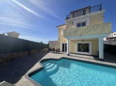 The house itself is a single-level home, measuring 120 m², and features a spacious open-plan liv-ing room and kitchen, 3 bedrooms, and 2 bathrooms. While the interior would benefit from some modernization, it offers solid potential to create a comfortable countryside retreat. Outside, you'll find a private pool, plenty of parking and a large water storage tank, and the entire plot is fully fenced.