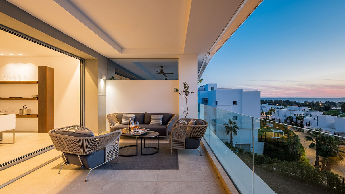 The west-facing terrace is large and versatile, with plenty of room to create your ideal outdoor setup – for dining, lounging, or sunbathing – all while enjoying panoramic views of the Mediterranean, Gibraltar, La Concha mountain, and Santa Clara Golf. The sunsets here are absolutely stunning!