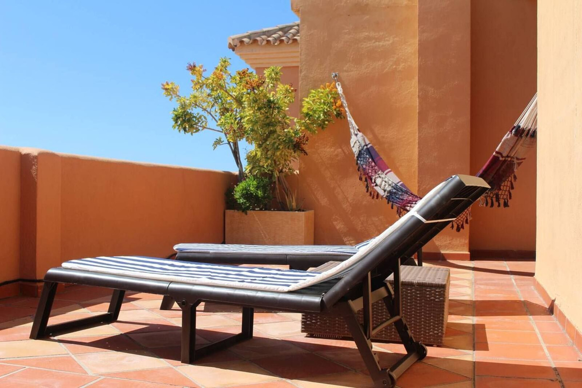 This fully independent one-bedroom penthouse, located in the tranquil hills of Elviria, Marbella, offers stunning panoramic views of the sea, mountains, and golf course. From the kitchen to the spacious terrace, every corner invites you to relax and soak in the sun, with total privacy and peace. Whether you're looking for the perfect holiday escape or a serene place to live year-round, this penthouse has it all.
