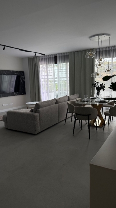It consists of 3 bedrooms and 2 bathrooms, one of which is en-suite, a fully equipped open-plan kitchen connected to the dining area and living room, and a terrace of approximately 15 m².