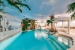 Outside is where you can find two waterfalls one of them runs into the pool and the other one runs into a river that flows throughout the garden. Behind this waterfall is where you can find a secret bar room.