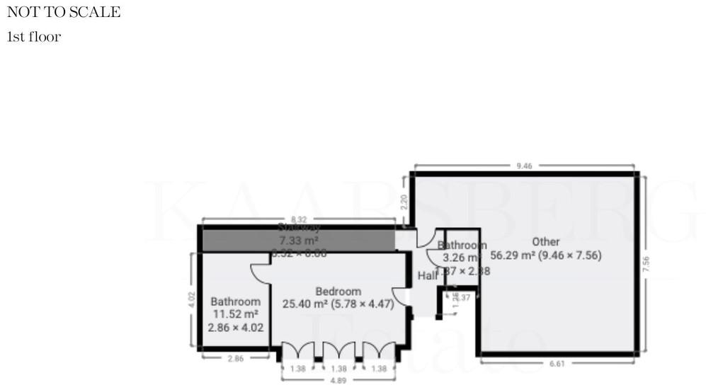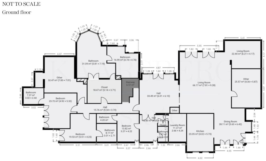 The house is laid out on 5 floors. The ground floor is where the kitchen and living room can be found as well as 3 bedrooms with en-suite bathrooms, a gym and an office.