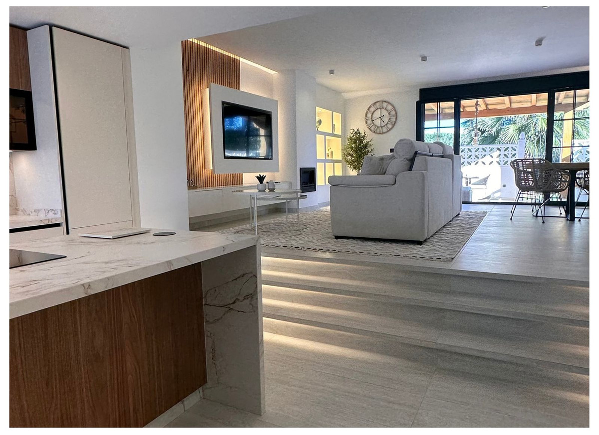 Located in a prime area, this stunning villa has been fully renovated, offering the perfect combination of elegant design, spaciousness, and functionality. With an optimized layout and high-quality finishes, this property provides a sense of tranquility and comfort, surrounded by nature and just 5 minutes from the beach.