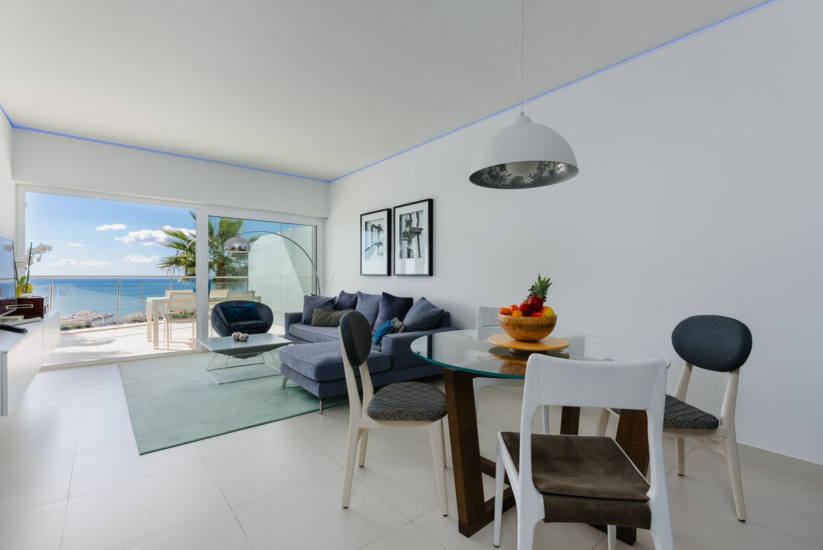 The corner apartment offers, thanks to its exceptional location within the residential complex, absolute privacy on more than 30 square meters of large terrace where you will spend most of your time. With a layout of 2 bedrooms 2 bathrooms, open plan kitchen fully equipped with appliances offers great facilities. Very practical separate utility room with washing machine, dryer and air conditioning unit. The apartment is offered for sale fully furnished and in perfect condition.