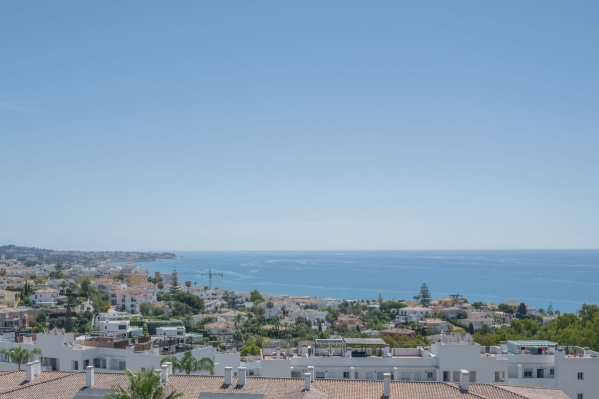 At the top of Miraflores, we welcome you to this newly renovated penthouse apartment with nothing less than breathtaking views of the Mediterranean and beautiful mountain views. On the horizon, on a clear day in autumn and spring, you will see the famous ski sports area Sierra Nevada with snow on top, which you will surely visit during your time here on the Costa del Sol. The apartment has been renovated in a welcoming Scandinavian style that fulfils the greatest needs of most people who dream of a home in southern Spain. There are clean lines from floor to ceiling and a fantastic terrace where you can enjoy the many hours of sunshine the Costa del Sol has to offer.