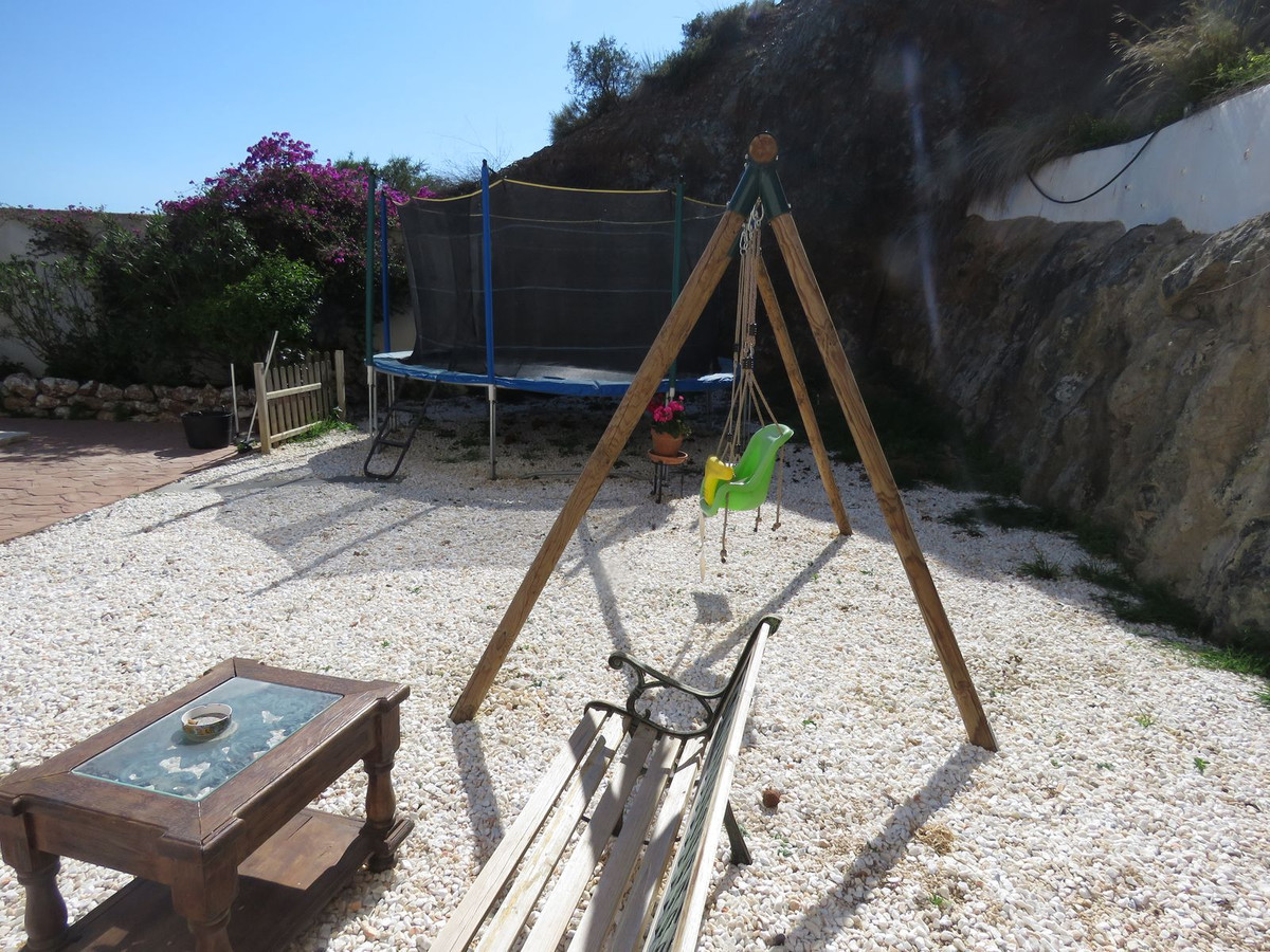 Great house with amazing mountain views. The property consists of 4 bedrooms and 3 bathrooms of which1 bedroom and bathroom is on the main level, the other 3 bedrooms and 2 bathrooms are on the 1st floor. The master bedroom comes with en-suite bathroom and leads out onto a nice sized terrace with incredible open views of the countryside. It has its own private swimming pool, BBQ area and children's playground. The outdoor space is tiled and easily maintained. Furthermore there is a large two car garage. Must be seen to appreciate and well worth viewing !!!