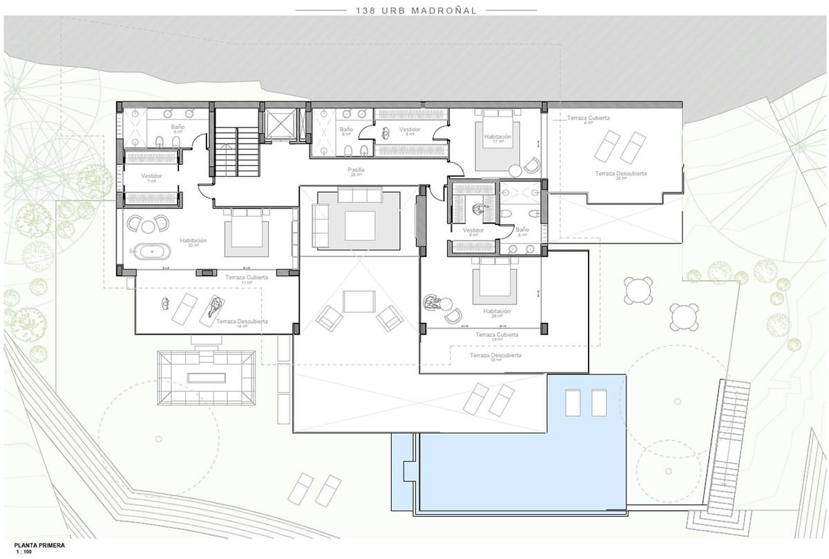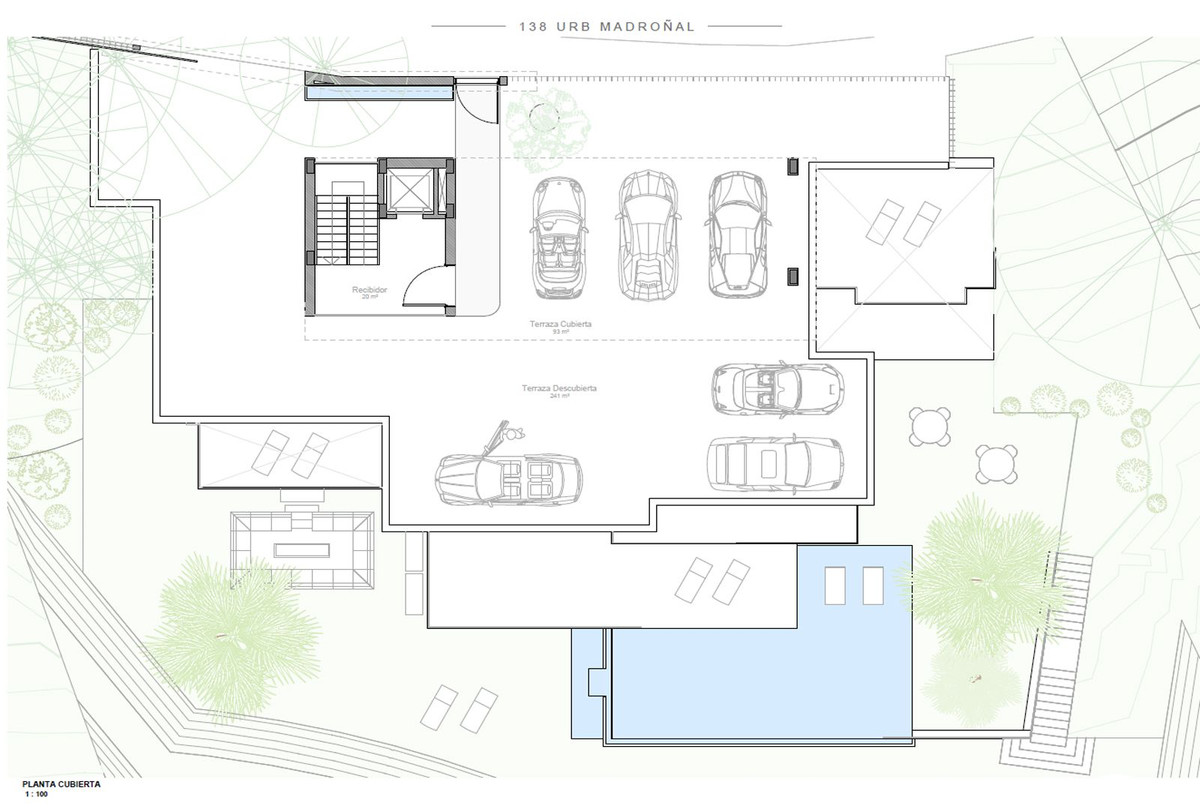 The plot is sold with a fully approved architectural project and building license for a contemporary villa with: