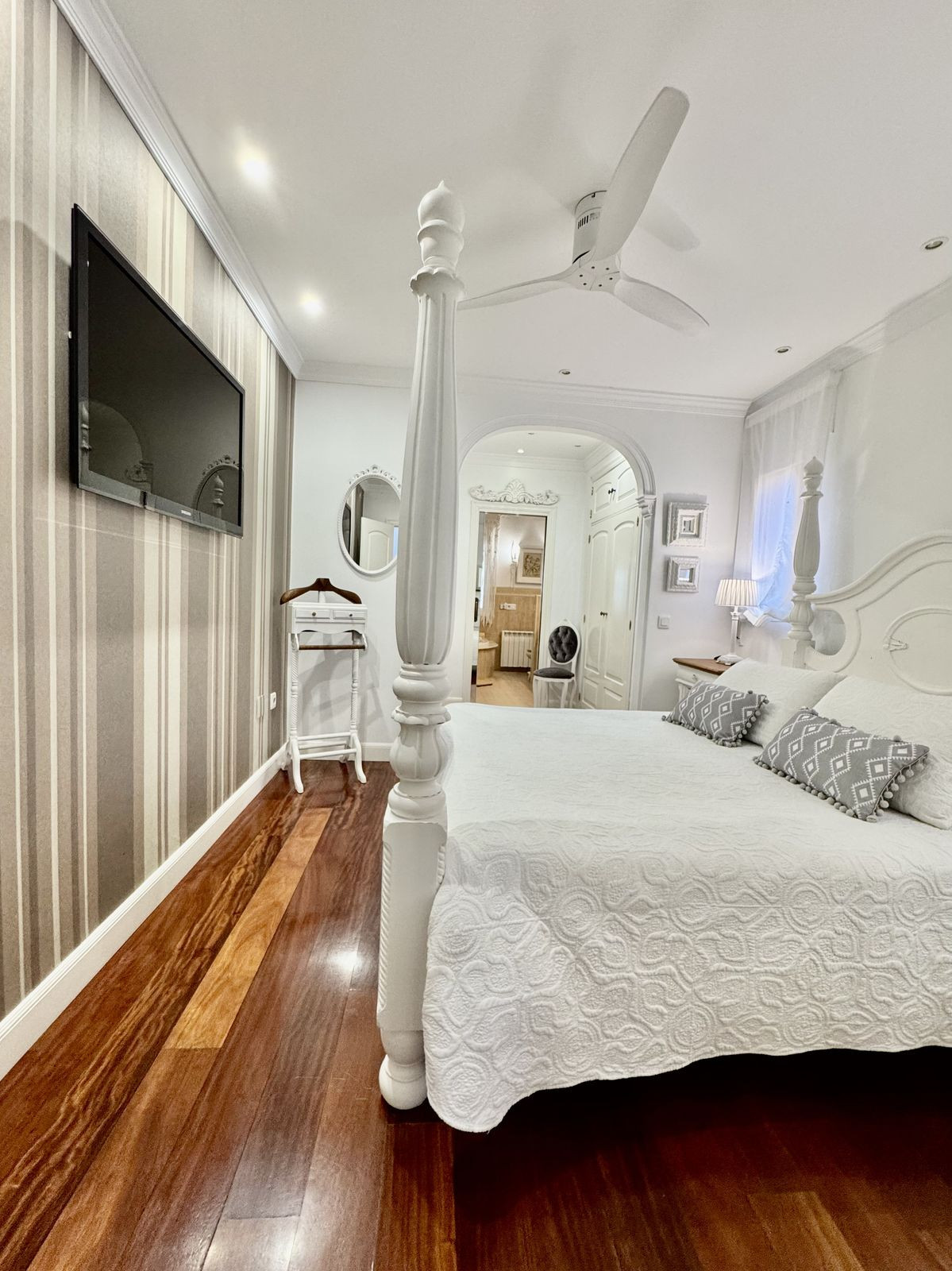 The upper floor offers three additional bedrooms and two bathrooms (one en suite, one with underfloor heating, and another with a balcony).