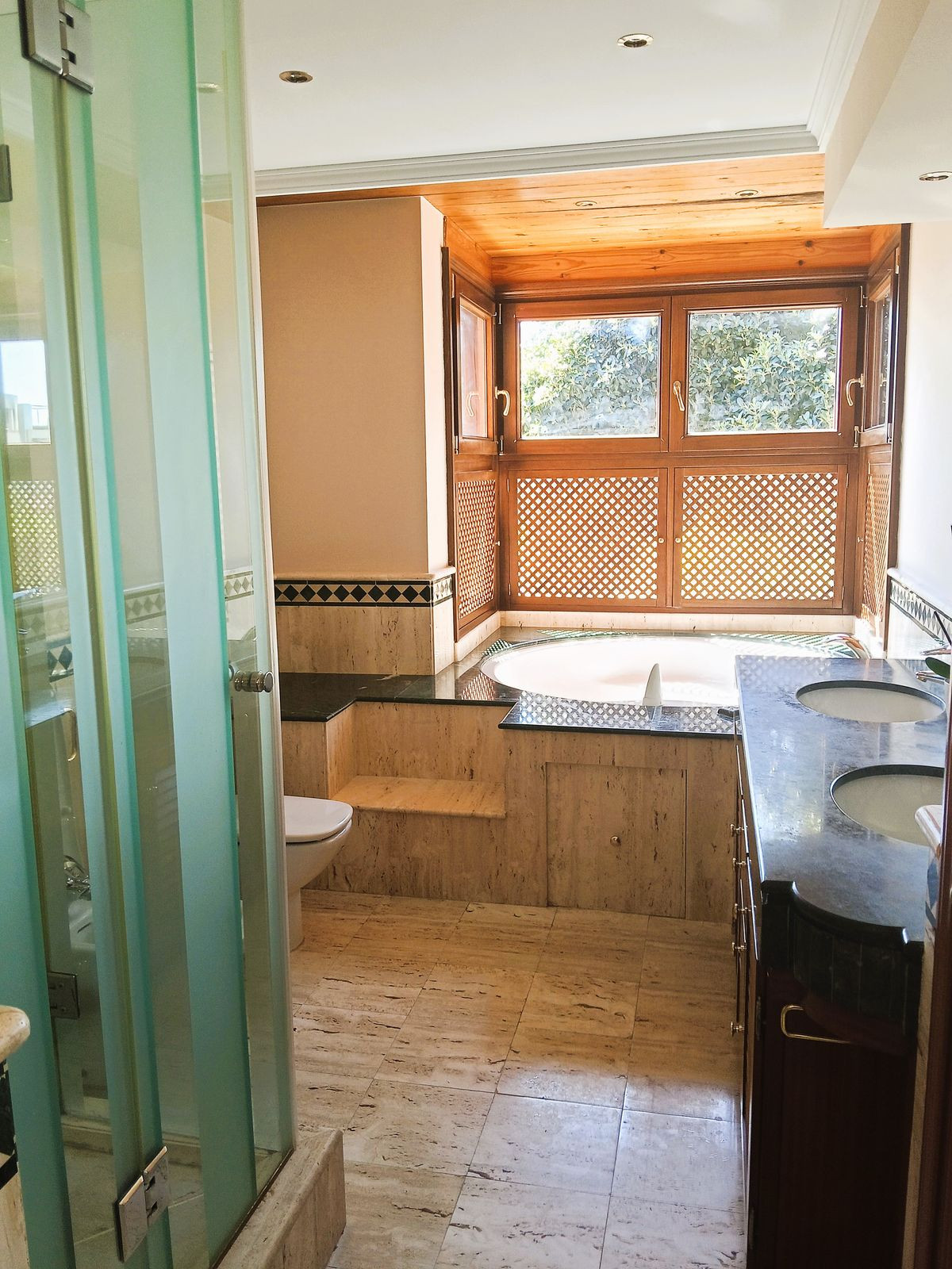 The house also includes additional features such as air conditioning, marble sinks, and built-in wardrobes, ensuring comfort and style.