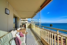 Luxury and spacious 3 bedrooms, 3 bathrooms apartment with nice sea views, situated in a private gated urbanization: Buenavista de La Quinta. This apartment is located in a small complex of 6 apartments in a rather unique and distinctive architectural style that you don't often encounter in the region and that contrasts with all the white apartments that are often being built. Offering lush gardens and a communal swimming pool. Buenavista is well known for its exclusivity, privileged situation and luxuries quality’s. Featuring intelligent home system, electric shutters, under floor heating in bathrooms, air conditioning hot/cold with individual control, fireplace, fully equipped kitchen, Siemens appliances, safe, first quality marble flooring and many other extras. This elevated ground floor South orientated property has 161 m2 built, plus a spacious covered and uncovered terrace of 67 m2 from which you will have the best views over the sea. The terrace has access from the lounge, the master bedroom and 1 guest bedroom. The bright kitchen has a useful adjacent laundry area and a nice French balcony with great views. The property comes with un underground parking space and a storage room.