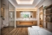 A sculptural staircase leads to the upper floor, where a guest suite with an adjoining bathroom, an office, a dressing room, and access to the terraces await, providing a private retreat for guests or residents seeking a quiet workspace. The basement is designed for functionality and entertainment, offering a spacious garage with room for up to six cars, as well as utility and storage spaces. Entertainment rooms in the basement expand options for leisure, making it the perfect space for gatherings and personal enjoyment.